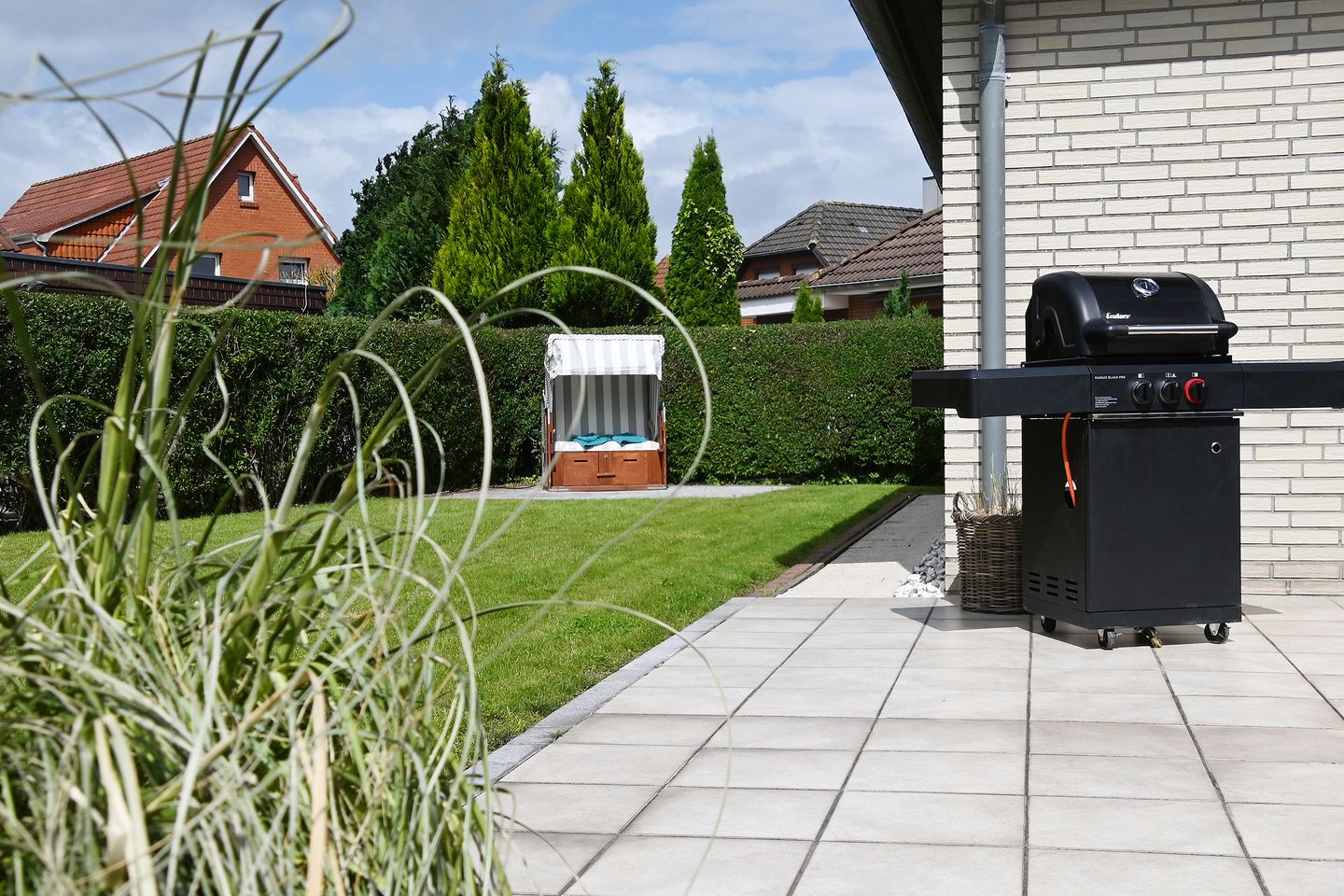 Ein Highlight der Wohnung ist der wunderschön gestaltete Garten mit Strandkorb. Hier können sich unsere Gäste auf lange Sommerabende freuen und den Abend mit dem vorhandenen Grill ausklingen lassen.