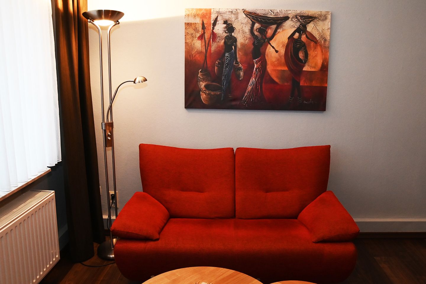 Die Wohnung befindet sich in dem 1929 erbauten Kaufmannshaus mitten im Zentrum von Büsum.
