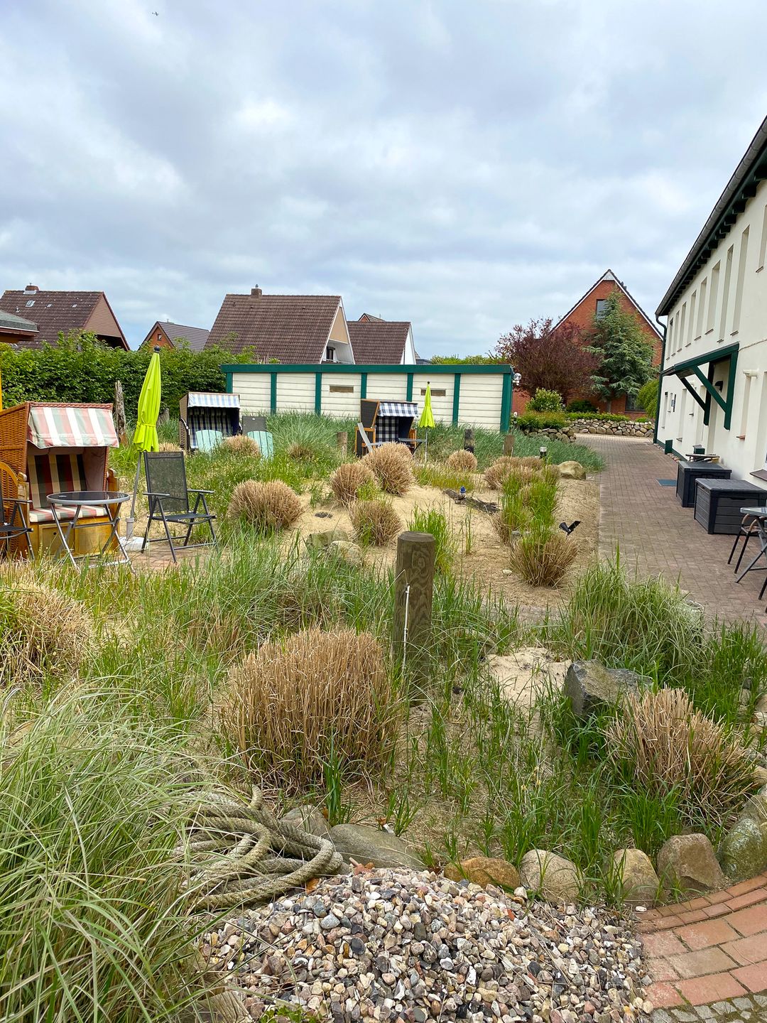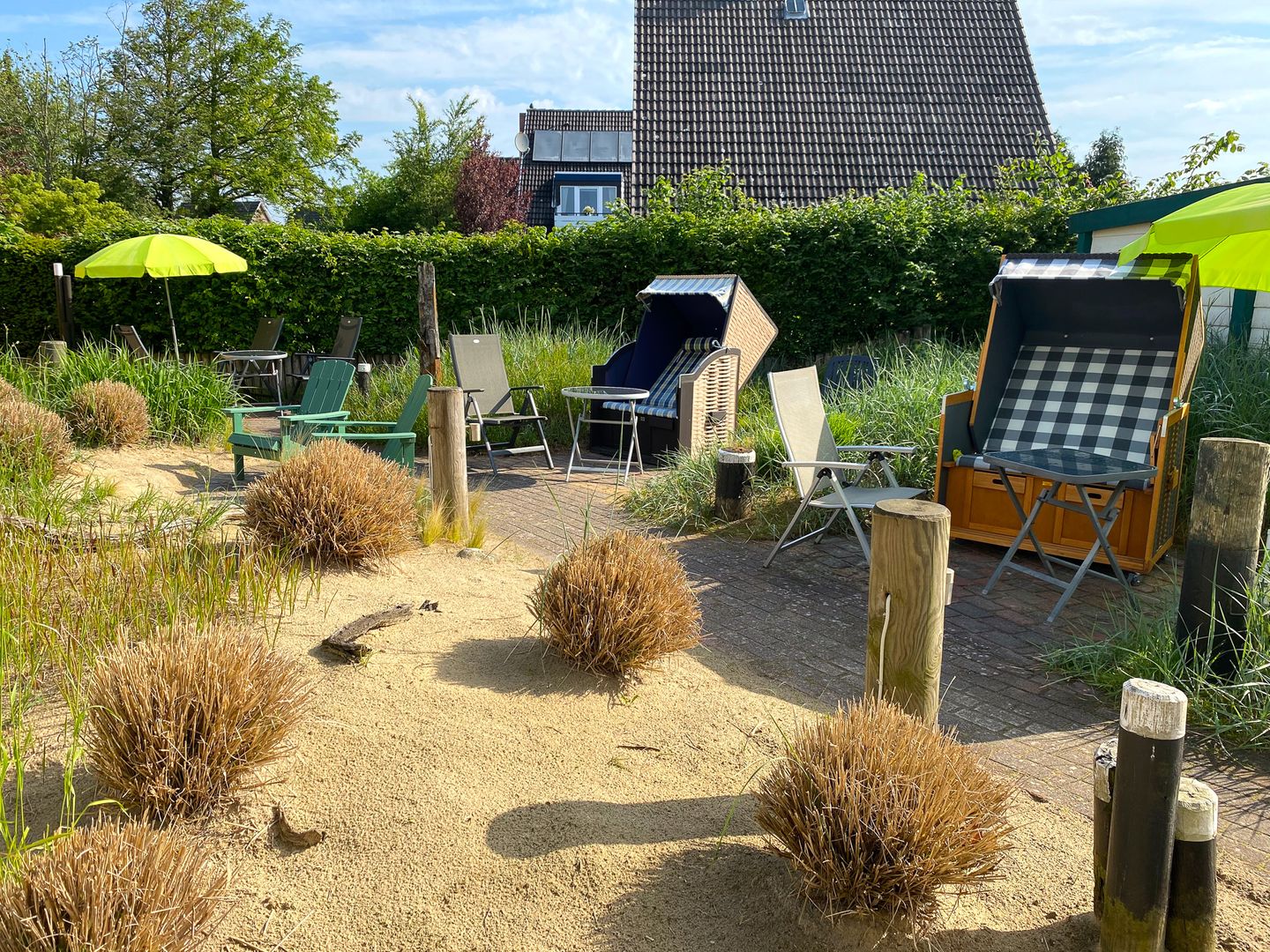 Der liebevoll gestaltete Außenbereich des Hauses bietet einen wind- und sichtgeschützen Ort an dem Sie Ihren Urlaubstag ausklingen lassen können.