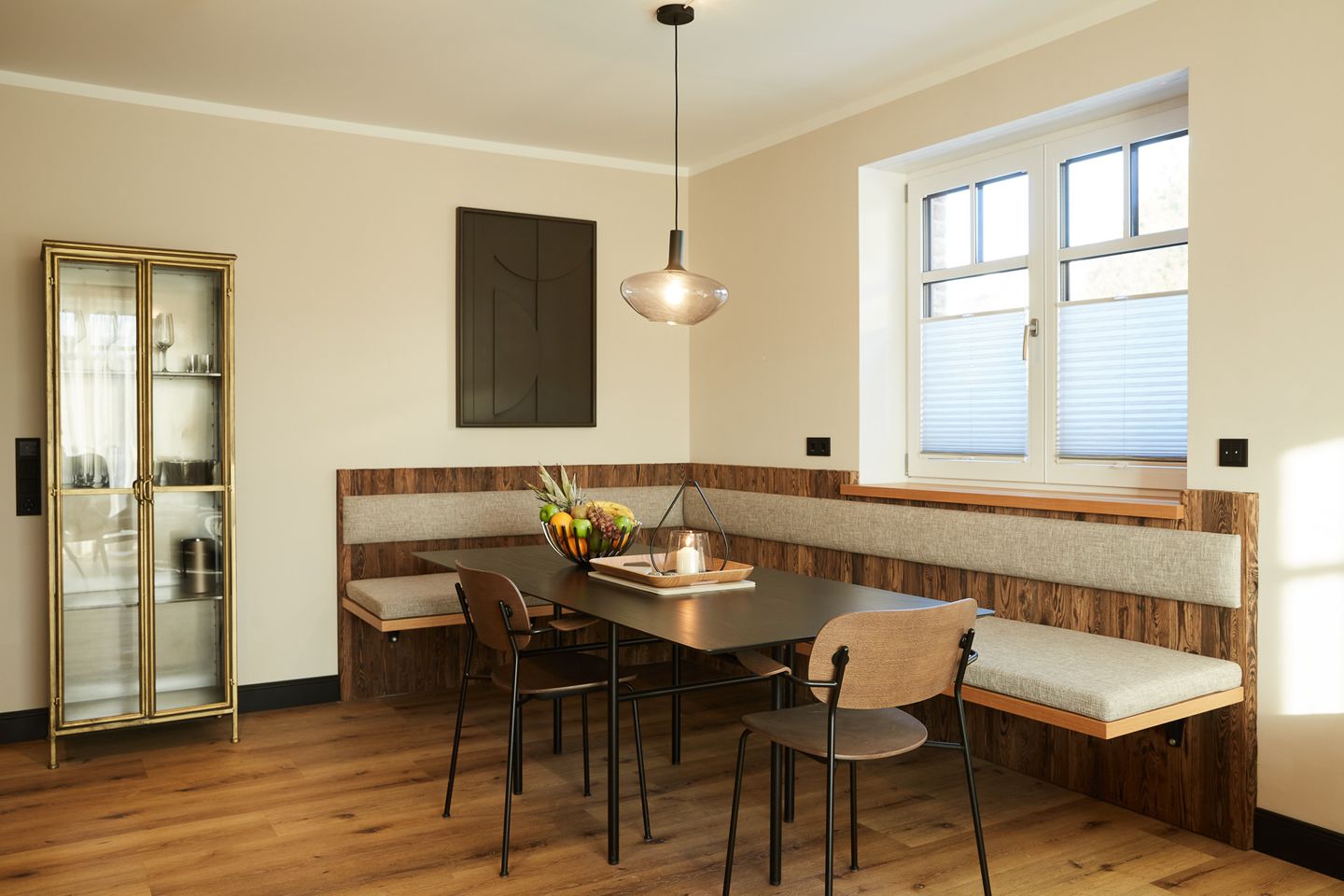 Auf rund 64 Quadratmetern finden vier Gäste Ihr kleines Urlaubsrefugium mit einer modernen und hochwertigen Ausstattung. Genießen Sie das entspannte Ambiente im lässigen Industrial Style, das gleichzeitig jede Menge Cozyness versprüht. Zusätzlich sorgen schallisolierte 3-fach verglaste Fenster und eine Fußbodenheizung für maximale Behaglichkeit.
