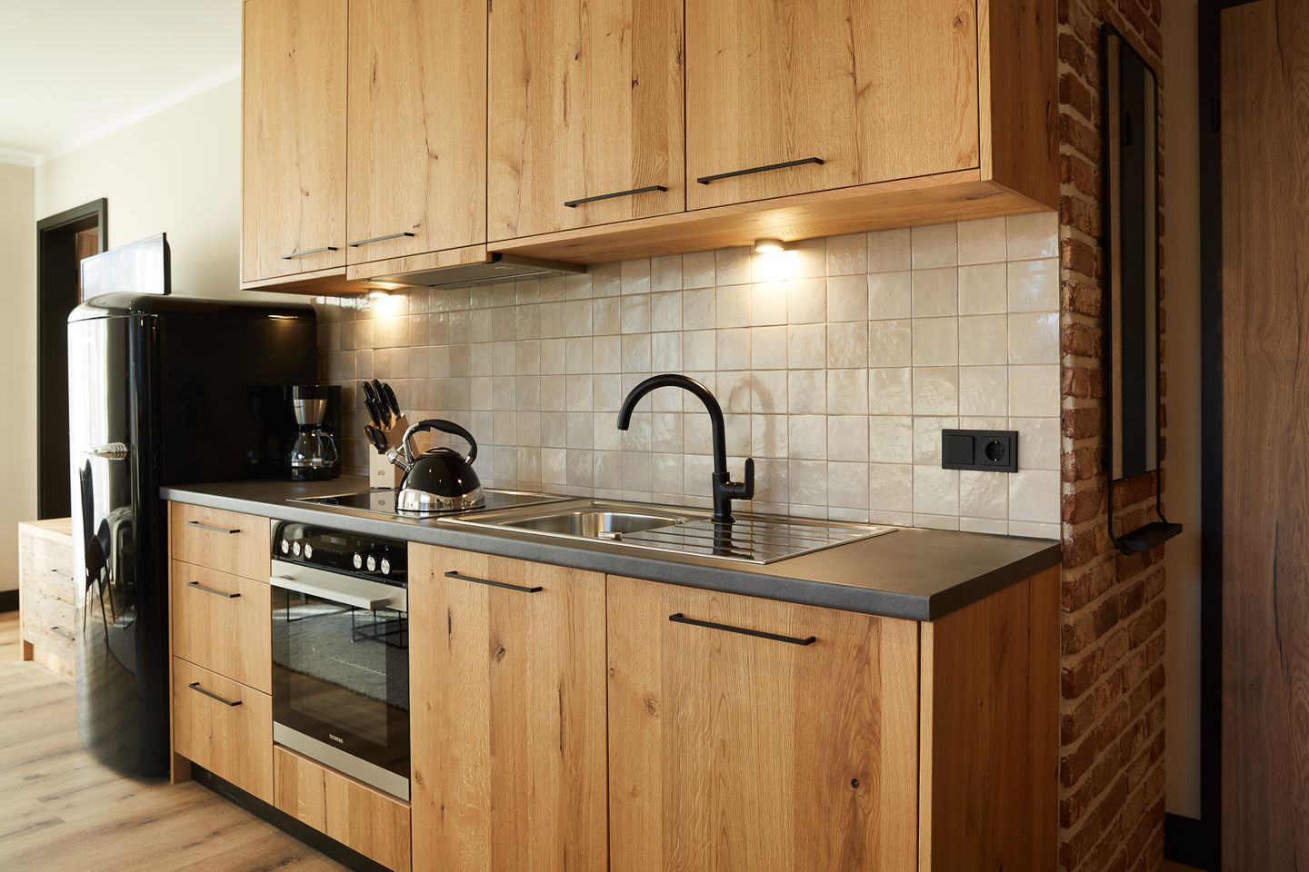 Die Ferienwohnungen sind zwischen 45 und 123 Quadratmetern groß und in sechs Kategorien eingeteilt – damit erfüllen sie jeden nur erdenklichen Urlaubsanspruch: Familien mit Kindern werden sich genauso wohl fühlen wie Paare oder Gruppen. Das hochwertige Interieur im Industrial Style versprüht jede Menge Cozyness. Wer mag, kommt sogar in den Genuss einer privaten Sauna. In einigen Apartments sind auch Haustiere erlaubt.