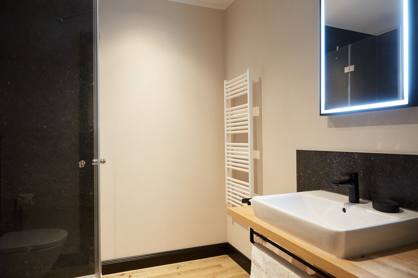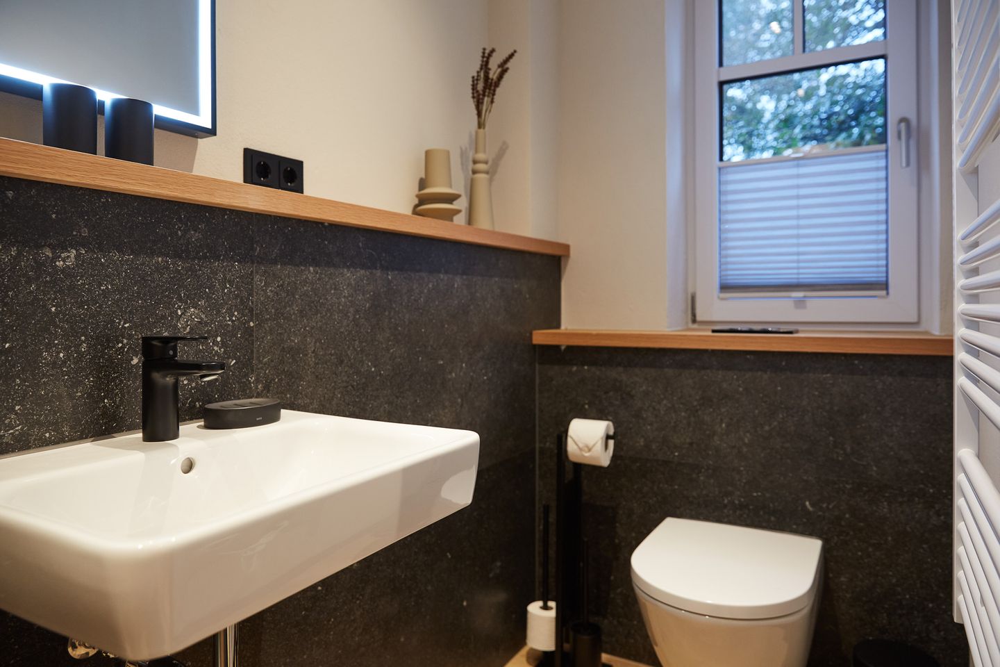 Auf rund 86 Quadratmetern finden sechs Gäste Ihr kleines Urlaubsrefugium mit einer modernen und hochwertigen Ausstattung. Genießen Sie das entspannte Ambiente im lässigen Industrial Style, das gleichzeitig jede Menge Cozyness versprüht. Zusätzlich sorgen schallisolierte 3-fach verglaste Fenster und eine Fußbodenheizung für maximale Behaglichkeit.