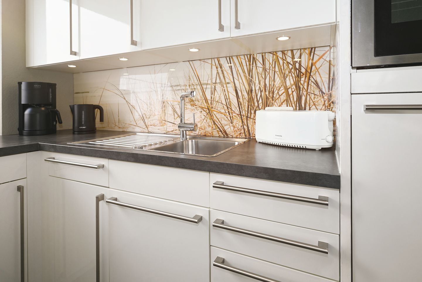 Ein separater Essbereich mit Esstisch schafft einen angenehmen Rahmen für gemeinsame Mahlzeiten. Die geschlossene Küche ist vollständig eingerichtet.