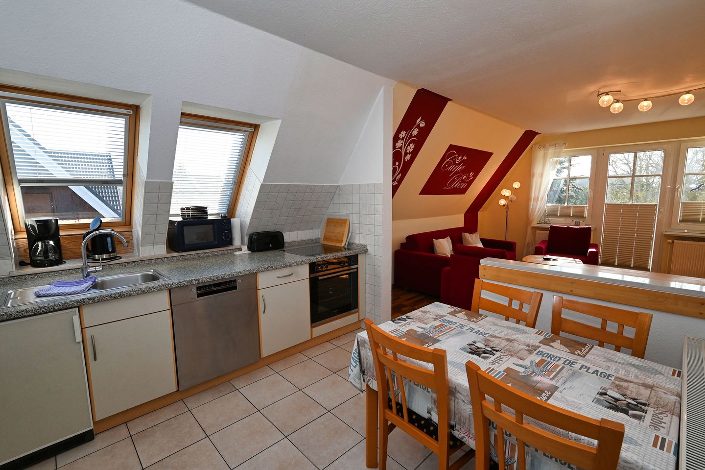 Im ersten Obergeschoss gelegen steht Ihnen außerdem ein Balkon zur Verfügung. Morgens den ersten Kaffee mit Nordseewirbel um die Ohren genießen, abends einen langen Strandtag ausklingen lassen – so schön!