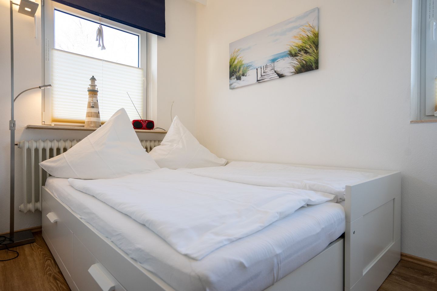 Das kleinere Schlafzimmer ist durch eine weitere ausziehbare Schlafmöglichkeit unter dem