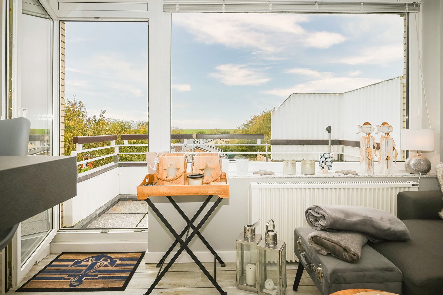 Der möblierte Balkon lädt zum Verweilen ein: Genießen Sie bei Sonnenaufgang eine Tasse Kaffee oder lassen Sie den Tag in der Abendsonne entspannt ausklingen.