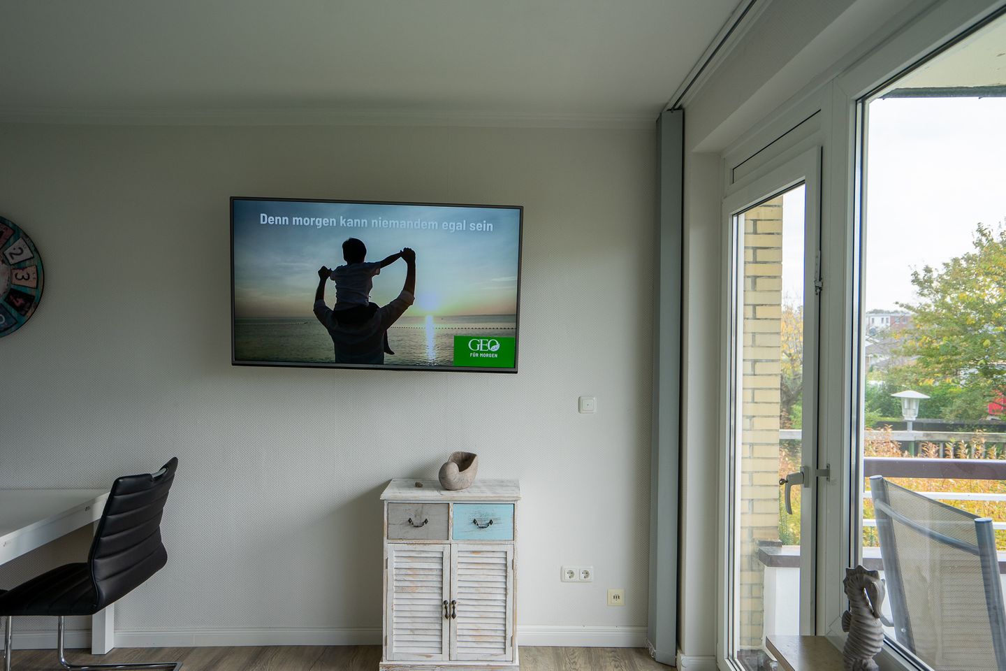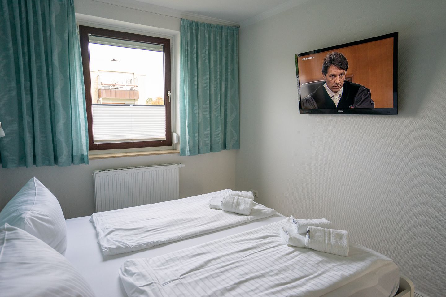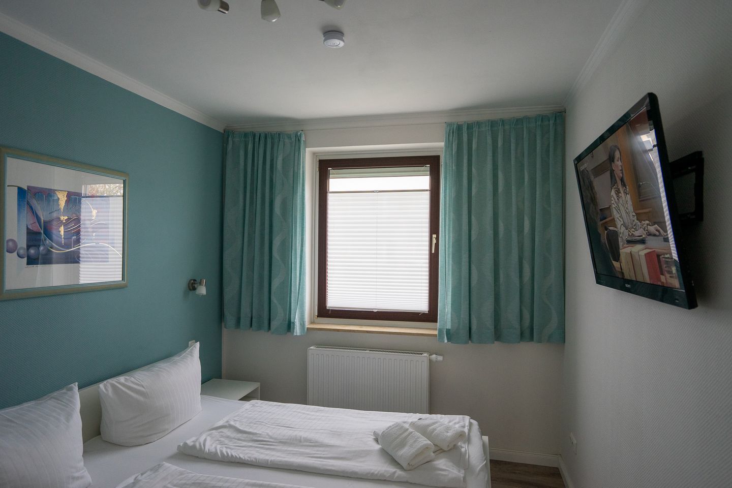 Ein weiterer Fernseher ist im Schlafzimmer vorhanden.