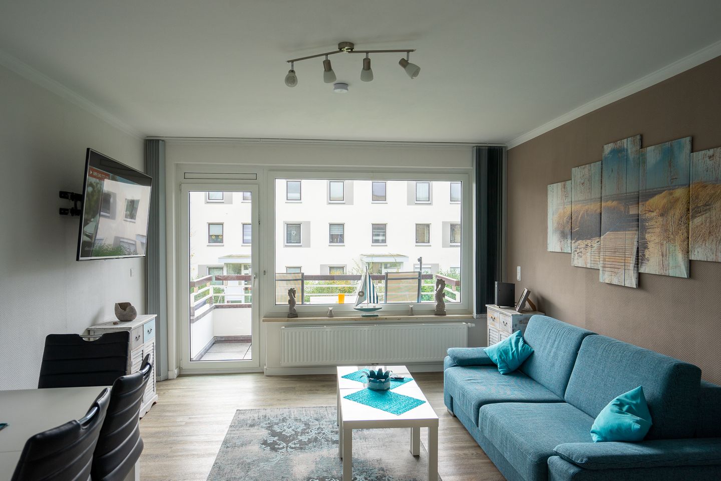 Neben dem Doppelbett im Schlafzimmer befindet sich eine ausziehbare Doppelschlafcouch im Wohnzimmer.