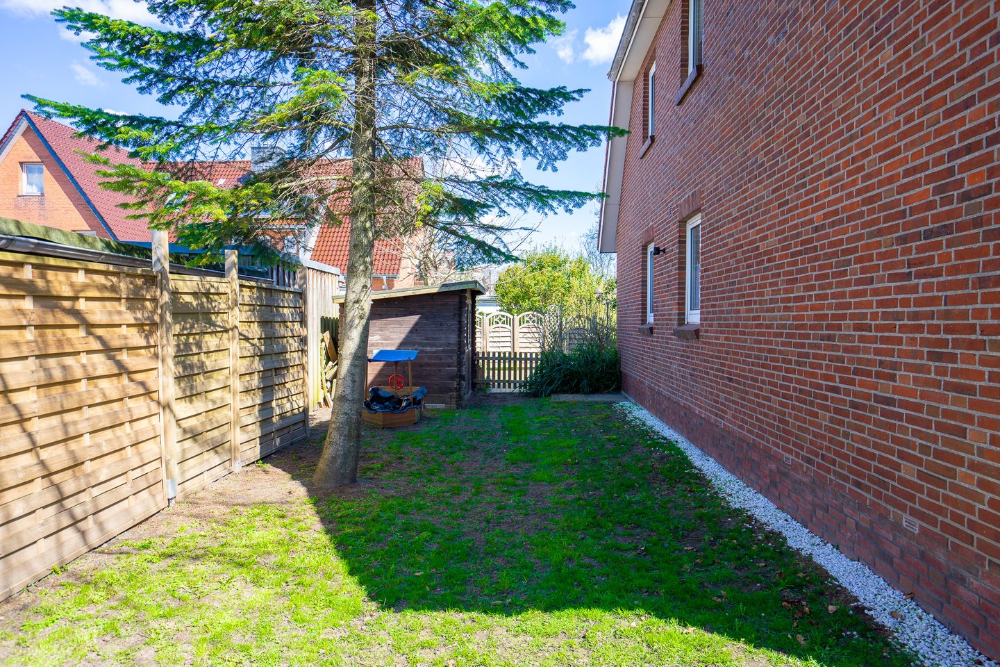 Von der Terrasse geht es weiter in den eigenen Garten. Auch Ihren Hund dürfen Sie gerne mitbringen.