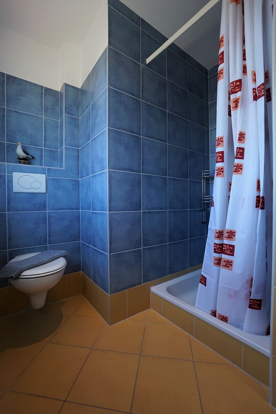 Im Wohnzimmer finden Sie eine weitere Schlafmöglichkeit in Form eines Schlafsofas. Das Badezimmer ist mit einer Fußbodenheizung und einem Fenster versehen.