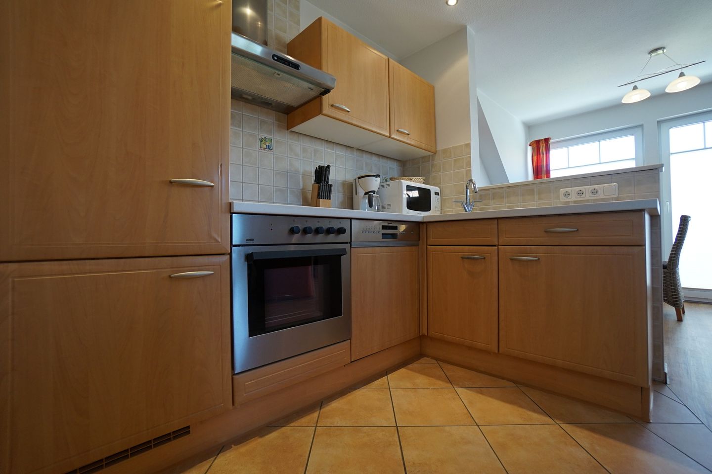 In der offenen Küche stehen Ihnen alle wichtigen Kochutensilien zur Verfügung.