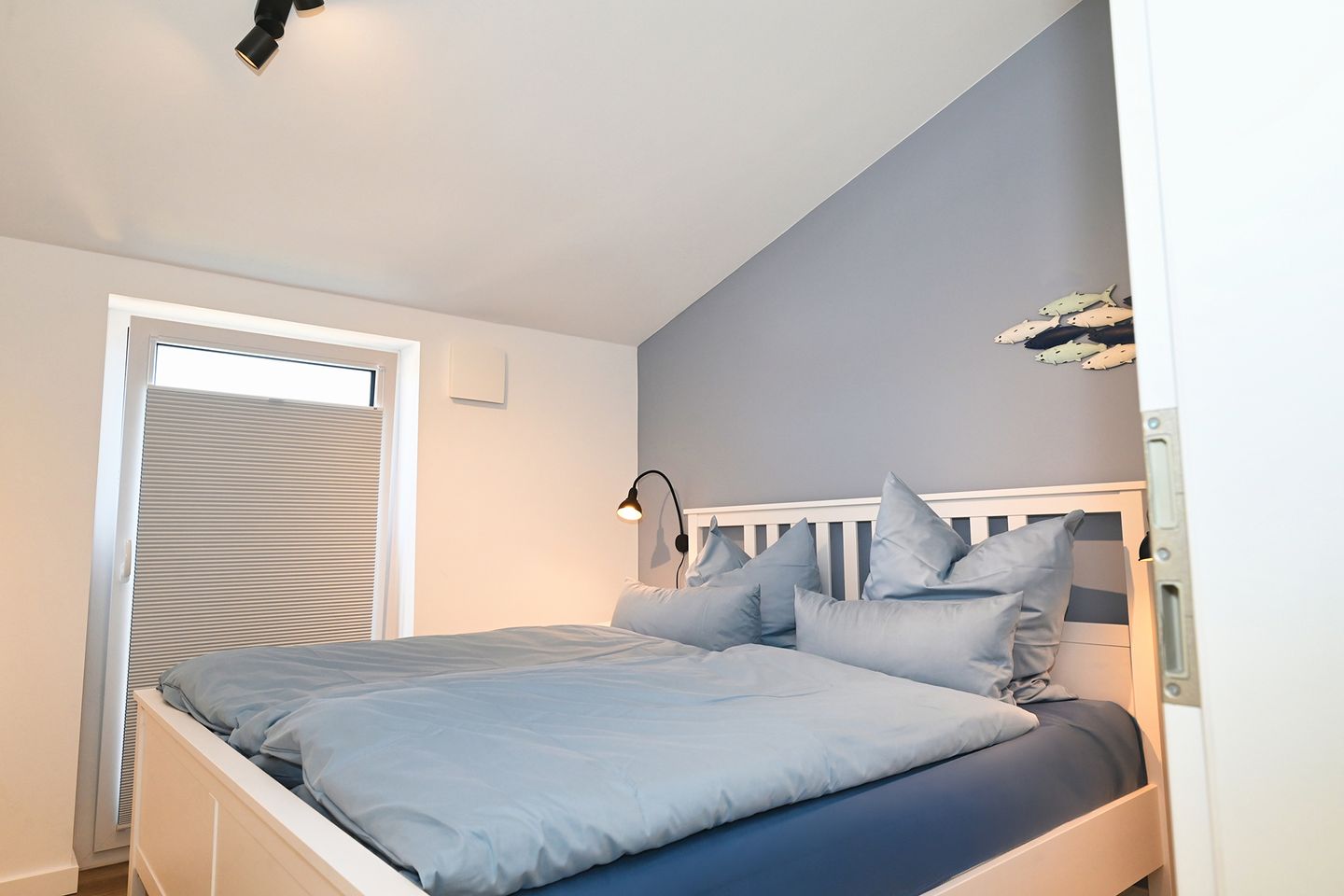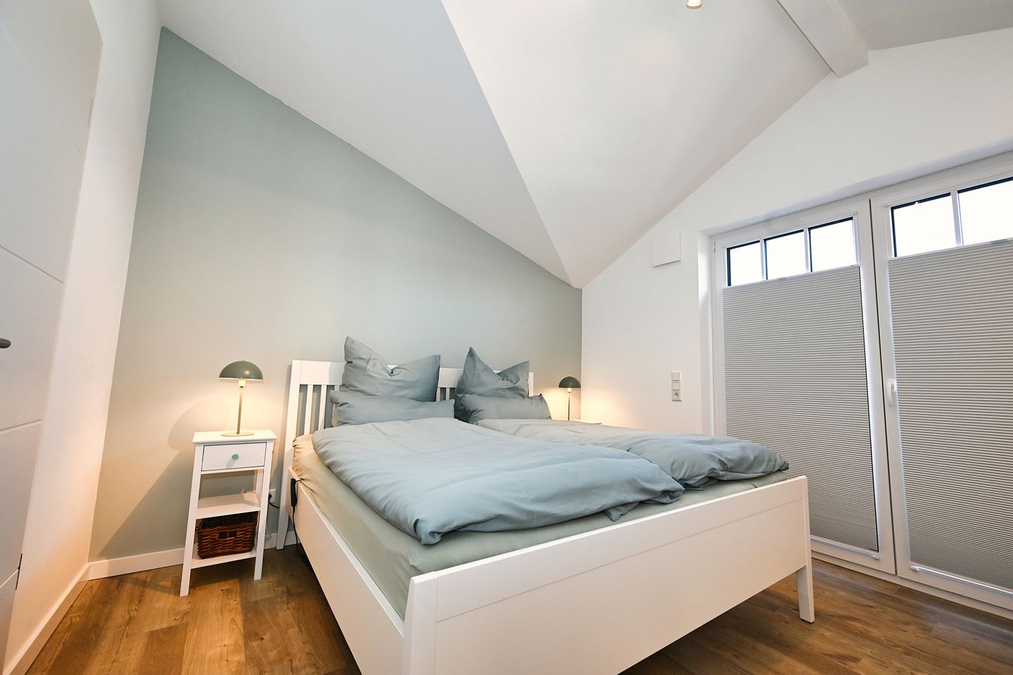 Beide Schlafzimmer sind mit hochwertiger Komfortbettwäsche in Übergröße ausgestattet und bieten besonders viel Platz und Bequemlichkeit für erholsame Nächte. Das Bett im großen Schlafzimmer verfügt zusätzlich über eine höhenverstellbare Funktion, die individuellen Komfort und erleichtertes Ein- und Aussteigen ermöglicht. Frische Bettwäsche sowie Handtücher bereits im Aufenthalt inklusive.