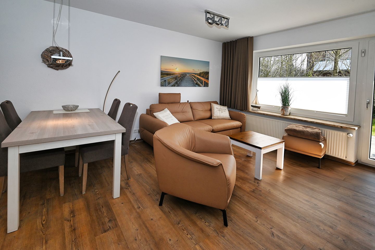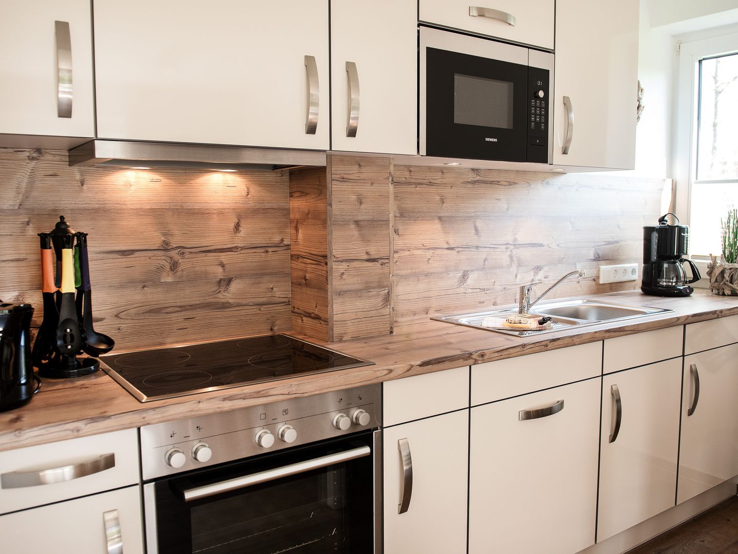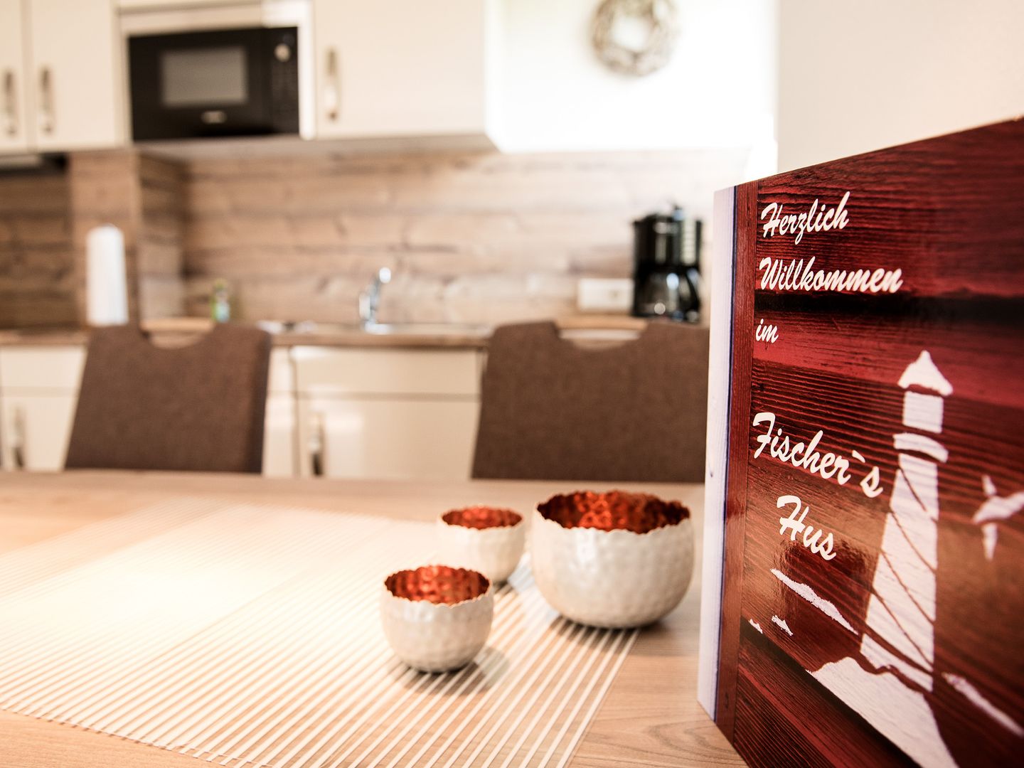 Im Inneren des Fischer's Hus erwartet Sie eine hochwertige Ausstattung, die keine Wünsche offenlässt. Die offene Küche ist mit modernen Geräten wie einem Cerankochfeld, einem Backofen, einer Spülmaschine und allen notwendigen Küchenutensilien ausgestattet, damit Sie auch im Urlaub Ihre Lieblingsgerichte zubereiten können. Der Esstisch im Wohnbereich lädt dazu ein, gemeinsame Mahlzeiten zu genießen. Der gemütliche Wohnbereich mit einem komfortablen Sofa, zwei Fernsehern und einer HiFi-Anlage sorgt nach einem langen Tag für entspannende Abende.