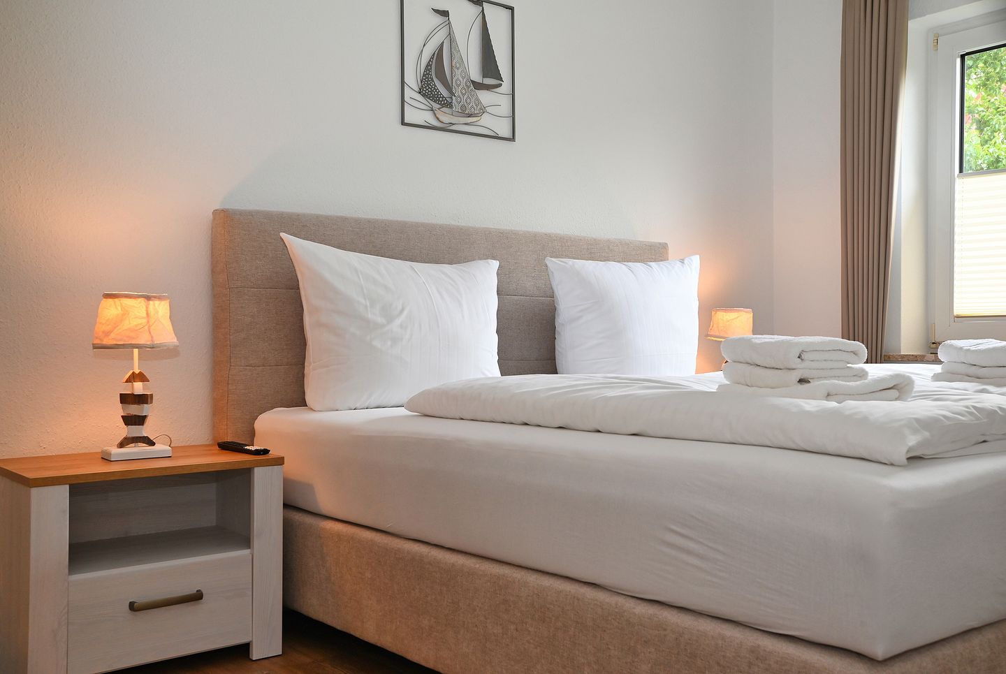 Alle Ferienwohnungen sind vollständig mit neuem Mobiliar und neuester Technik in allen Bereichen ausgestattet. Hinter dem Haus befindet sich eine neu gestaltete Gemeinschaftsfläche mit Kinderspielgeräten.