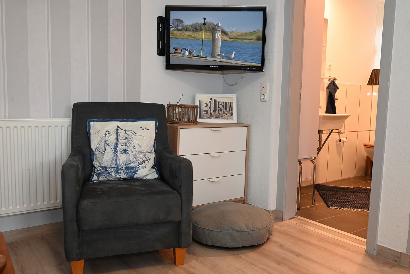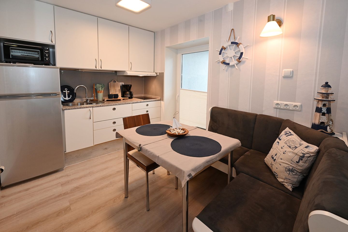 Im gemütlichen Wohn- und Essbereich mit offener Küche kommen Sie nach einem aufregenden Küstentag zusammen, können gemeinsam kochen, die Füße hochlegen oder einen Film schauen.