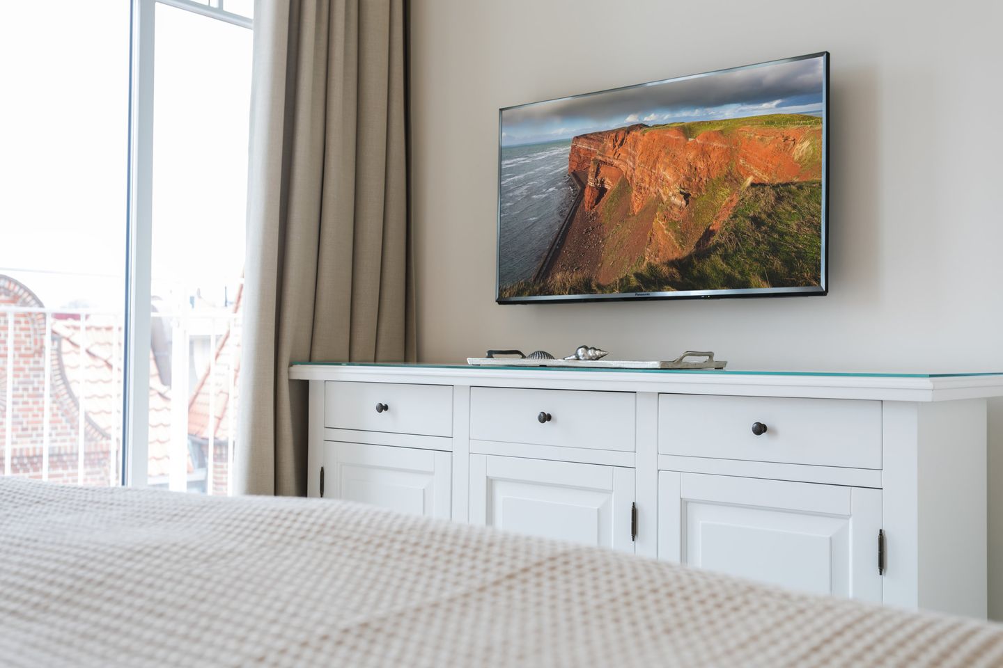 Dazu wurden hochwertige Möbel, Tischlereinbauten und Designobjekte ausgewählt. Ein WLAN-Radio im Bad, eine Bose-Musikanlage mit Internetradio, drei Smart-TVs,