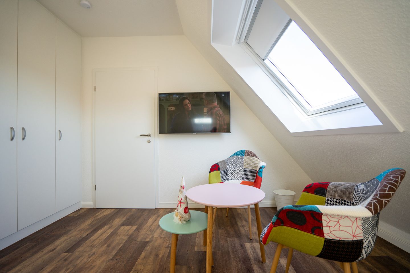 Die komfortable Ferienwohnung befindet sich in der zweiten und dritten Etage der Anlage.