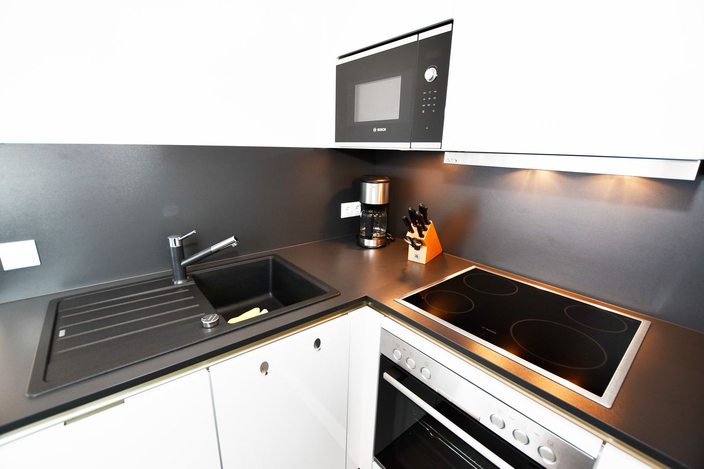 Es gibt 6 exklusive Wohnungen mit 1 bzw. 2 Schlafzimmern. Sämtliche Wohnungen haben hochwertige Designböden. Alle Wohnungen verfügen über neue Bäder, teils mit Tageslicht, komplett neue Möblierung und neue Küchen mit Geschirrspüler, Ceranfeld, Backofen und Mikrowelle (teils als Kombigerät) etc. Alle Appartements sind Nichtraucherappartements.