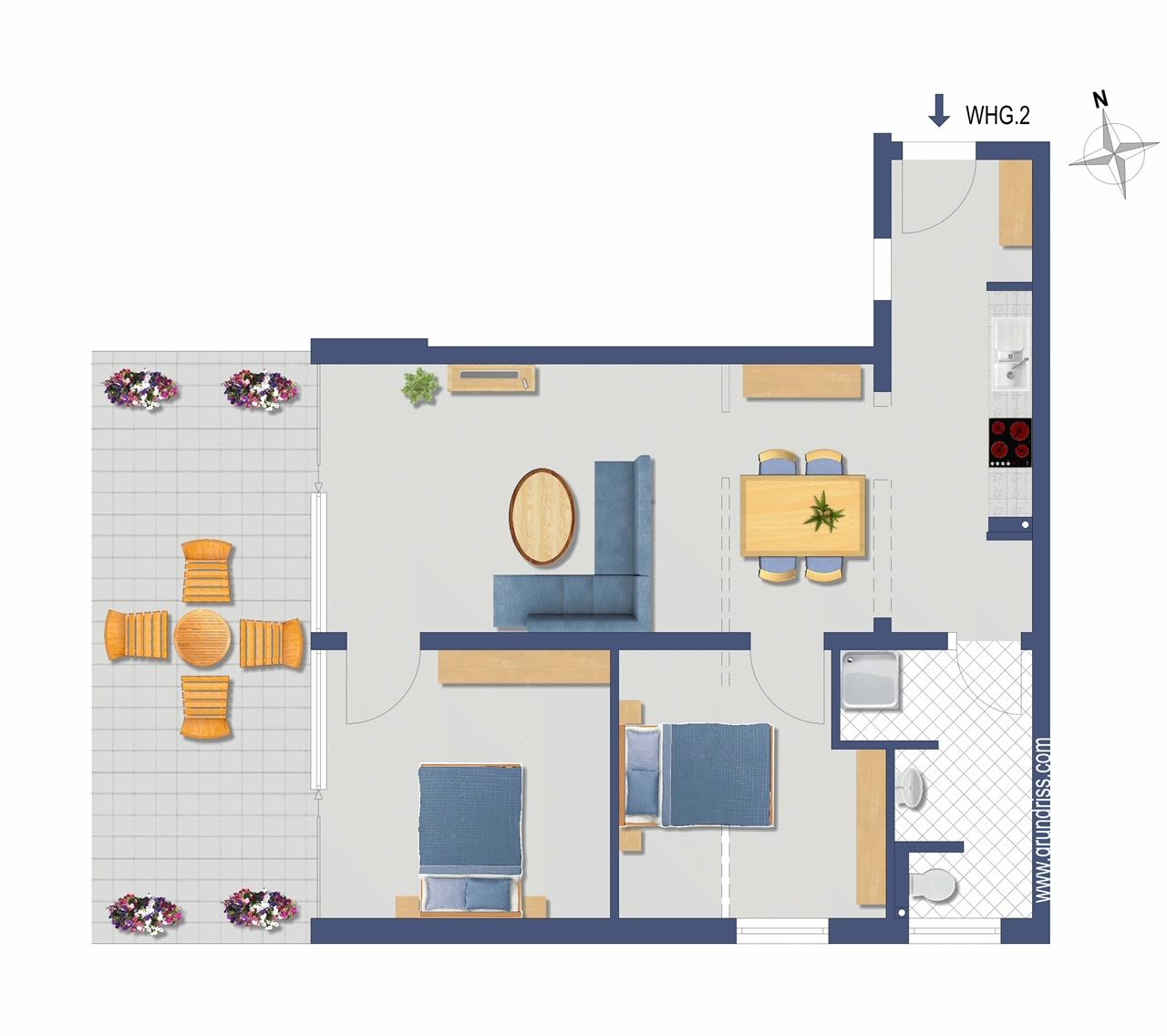 Die Wohnung befindet sich im Parterre und ist allergikergeeignet, was sie zur optimalen Wahl für alle macht, die ein gesundes Raumklima schätzen. Die umfangreiche Ausstattung umfasst zwei gemütliche Schlafzimmer sowie einen einladenden Wohnbereich, der geöffnet zum Essbereich und zur modernen Küche ist. Hier können Sie gemeinsam Ihre Lieblingsgerichte zubereiten und beim Essen die neuesten Erlebnisse des Tages austauschen.