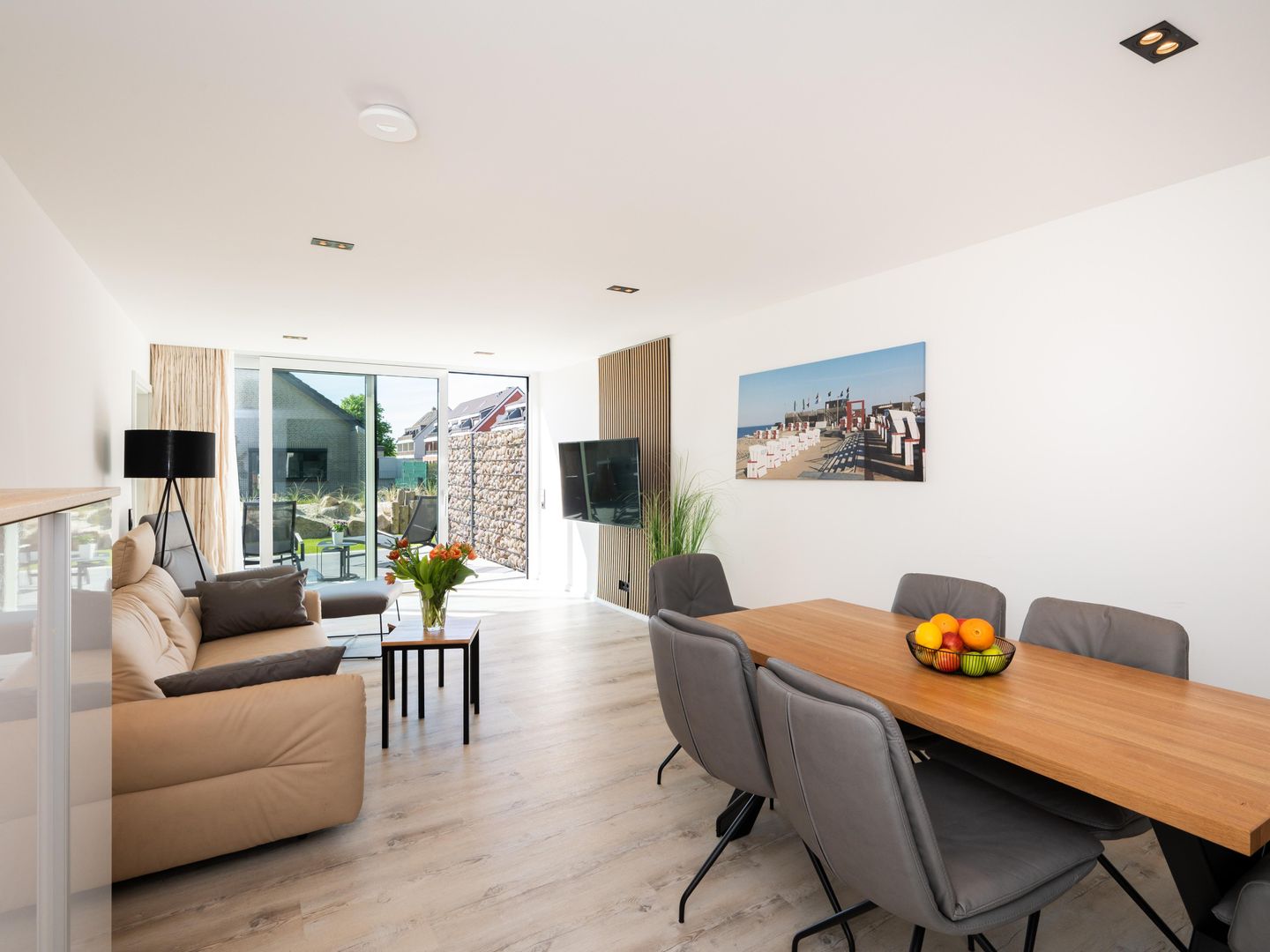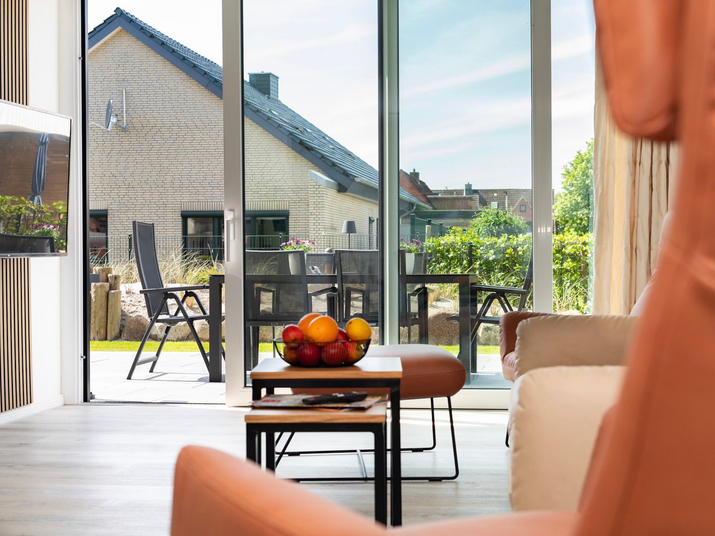 Der Wohnraum ist lichtdurchflutet und mit einer bequemen Sofaecke ausgestattet, wo Sie nach einem erlebnisreichen Tag entspannen und die Zeit genießen können. Genießen Sie auch die Annehmlichkeiten durch drei Fernseher und kostenfreies WLAN, um jederzeit in Kontakt zu bleiben oder Ihre Lieblingsfilme zu streamen.