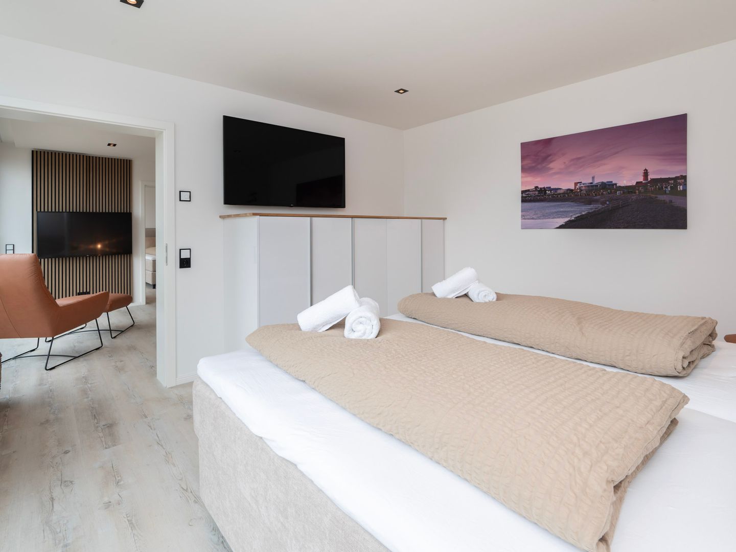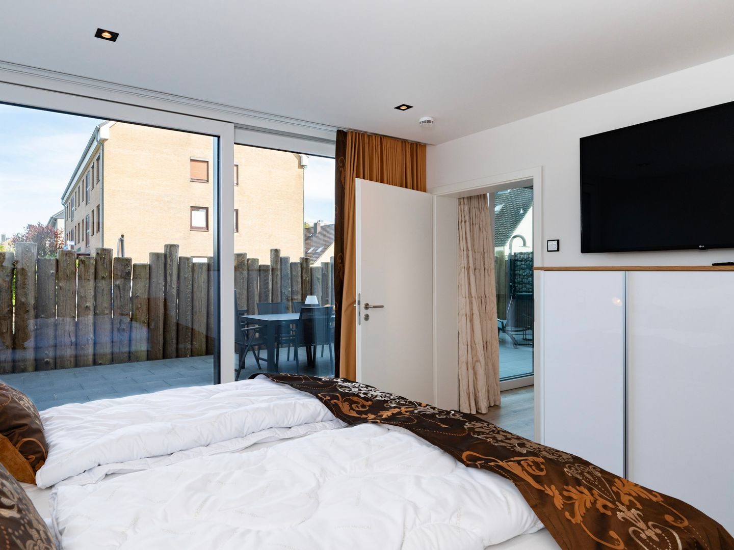Ein weiteres Highlight der Wohnung ist das stilvolle Badezimmer mit bodengleicher Dusche, Waschbecken, WC und großen Fenstern, die für eine helle Atmosphäre sorgen. Die Fußbodenheizung und die Wärme der Einrichtung schaffen eine wohlige Atmosphäre, die zum Entspannen einlädt. Zusätzlich stehen Ihnen praktische Annehmlichkeiten wie eine Waschmaschine, ein Trockner und kostenfreies WLAN zur Verfügung.