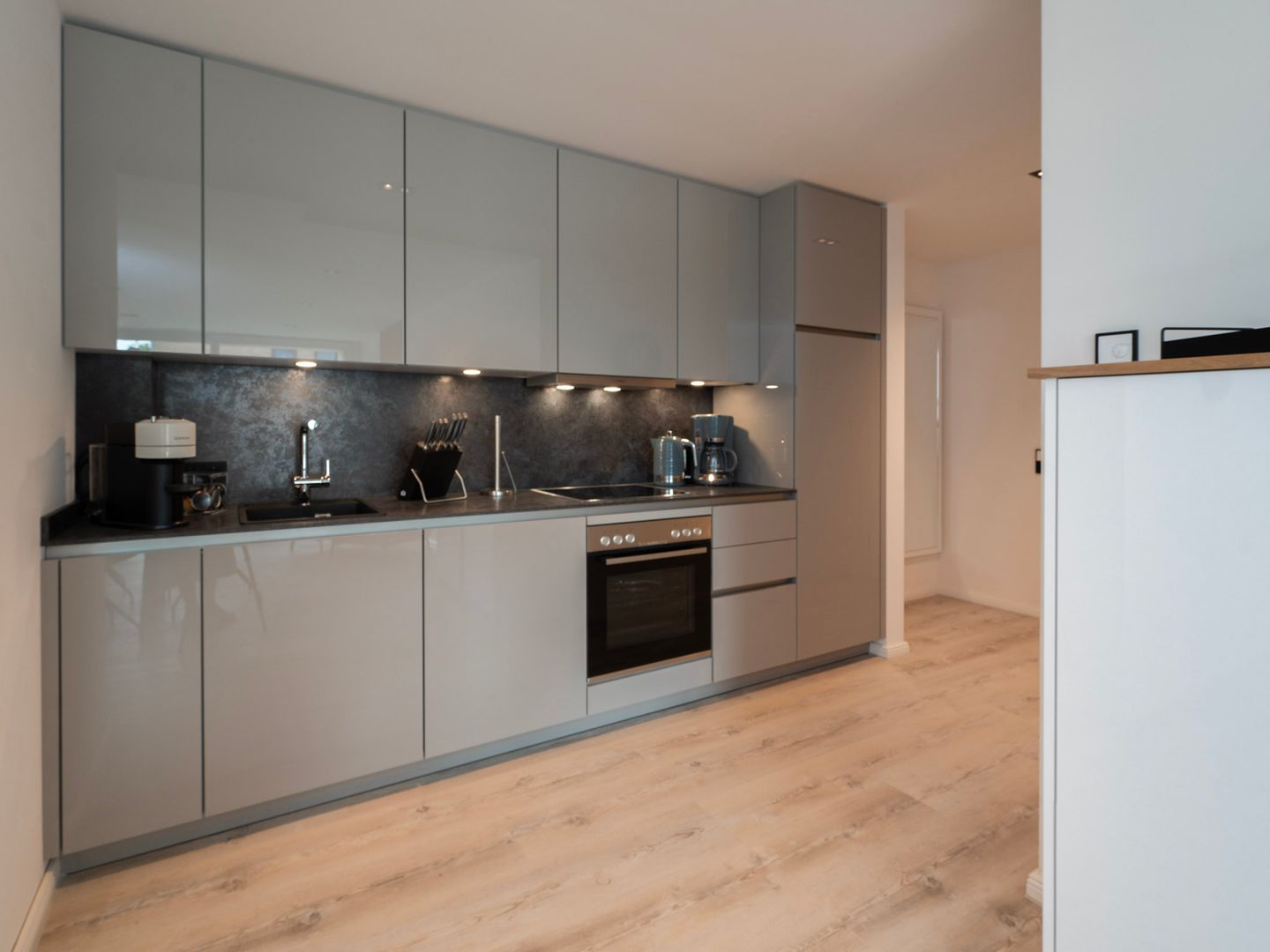 Die Inseltörn Wohnung 7 wurde 2023 frisch renoviert und ausgestattet, um Ihren Aufenthalt so komfortabel wie möglich zu gestalten. Der offene Küchenbereich geht nahtlos in das gemütliche Wohnzimmer mit Sofaecke über, wo Sie gemeinsame Abende mit einem guten Buch oder einem Film genießen können. Die voll ausgestattete Küche verfügt über einen Herd, einen Elektro-Backofen, eine Spülmaschine und sogar eine Espressomaschine für den perfekten Kaffee am Morgen. Praktisch sind die Waschmaschine und der Trockner, die Ihnen die Nutzung von gemeinsamen Einrichtungen in der Wohnung anbieten.