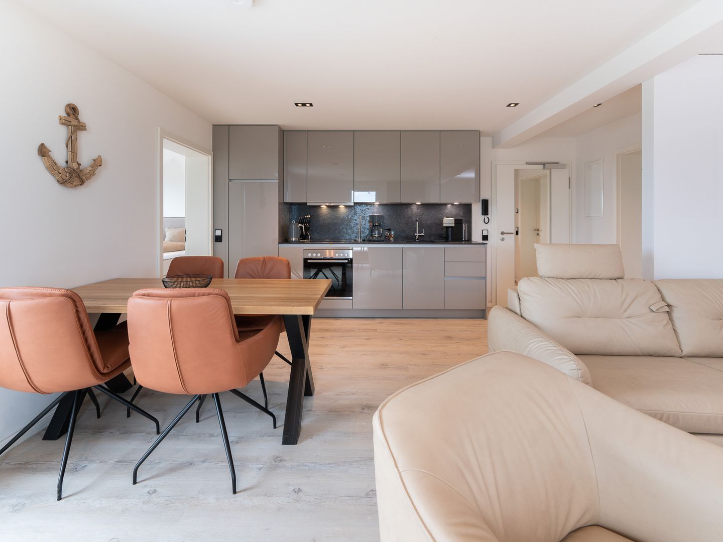 Das lichtdurchflutete Wohnzimmer ist der perfekte Ort, um sich nach einem ereignisreichen Tag zu entspannen. Die gemütliche Sofaecke lädt zum Verweilen ein, während drei Fernseher für Unterhaltung sorgen. Vom Wohnzimmer aus gelangen Sie auf den Balkon, wo Sie bei frischer Meeresluft den Alltag hinter sich lassen können.