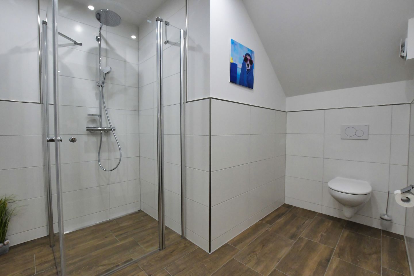 Die Wohnung verfügt über zwei gemütliche Schlafzimmer. Die Fußbodenheizung sorgt für angenehme Wärme an kühlen Tagen. Das moderne Badezimmer ist mit einer bodengleichen Dusche, einem WC und einem Waschbecken ausgestattet und bietet Ihnen jeden Komfort, den Sie benötigen. Außerdem stehen Ihnen Gemeinschaftswaschmaschinen und Trockner zur Verfügung.