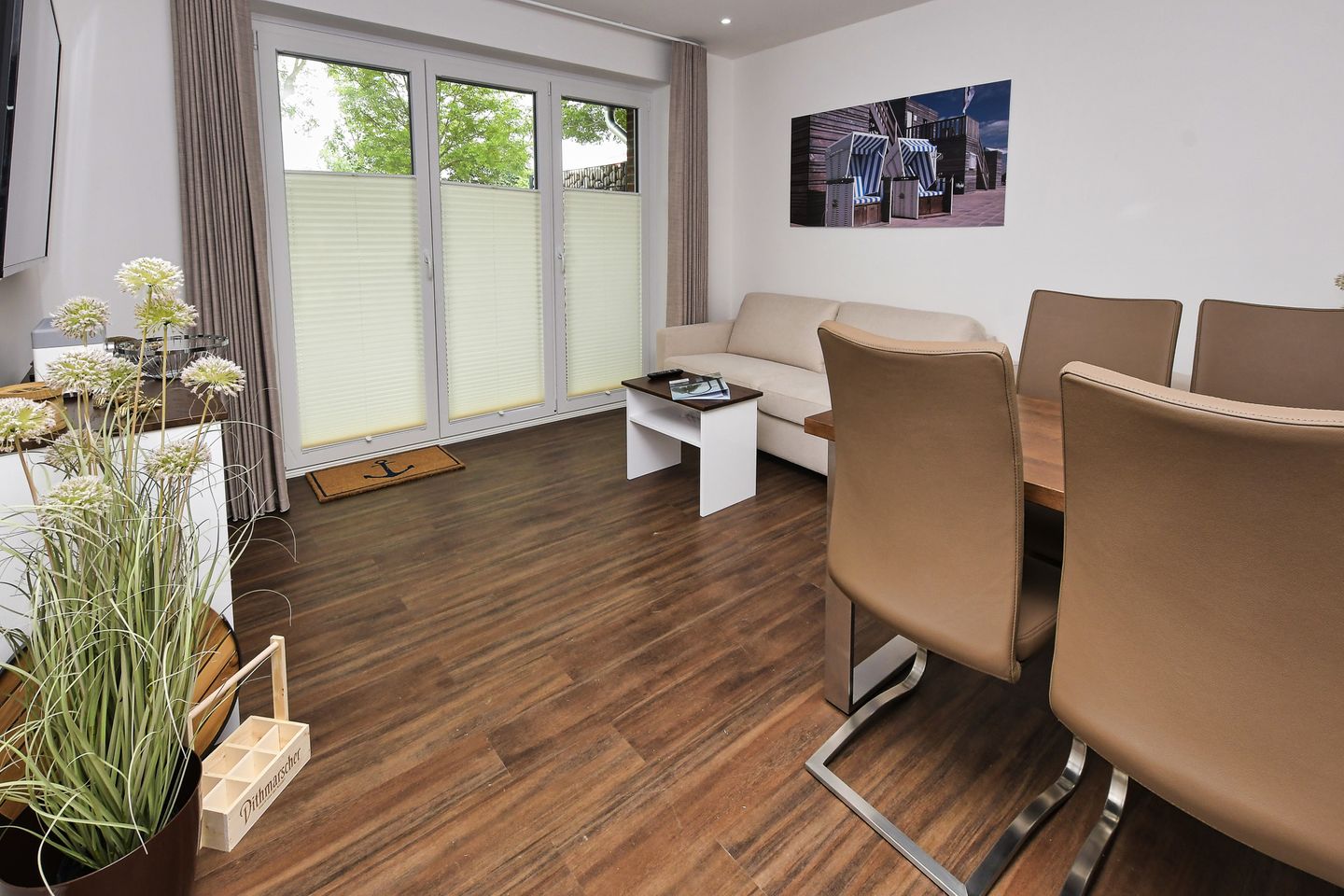 Die Lage der Wohnung ist perfekt – nur 700 Meter zum Strand und 650 Meter zu einem der entzückenden Restaurants, die die Region zu bieten hat. Hier haben Sie die Gelegenheit, frischen Fisch und regionale Spezialitäten zu genießen. Für Ausflüge und Abenteuer warten zahlreiche Freizeitmöglichkeiten in der Umgebung auf Sie, darunter Wassersport, Radfahren und entspannende Strandspaziergänge. Der Bahnhof befindet sich ebenfalls nur 2000 Meter entfernt und sorgt für unkomplizierte Anreisen.