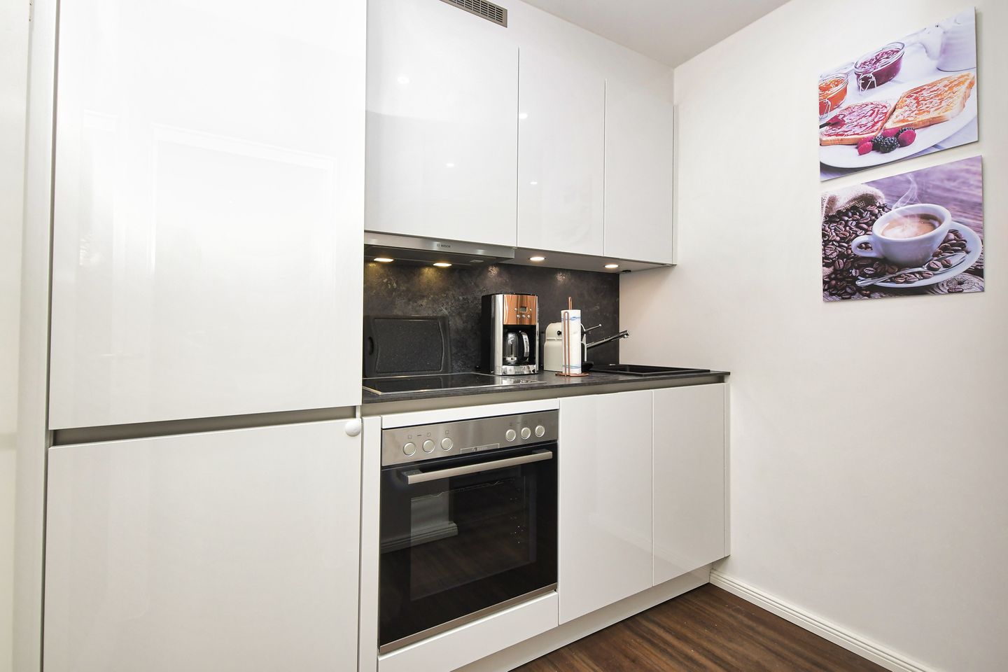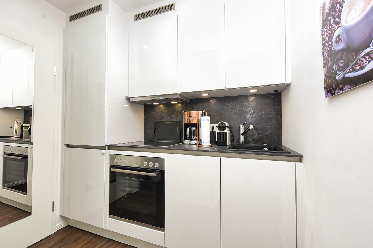 Es entstanden 6 exklusive Wohnungen mit 1 bzw. 2 Schlafzimmern. Sämtliche Wohnungen sind mit hochwertigem Designboden ausgestattet. Alle verfügen über neue Bäder, komplett neue Möblierung und neue Küchen mit Geschirrspülern, Ceranfeld, Backofen oder Mikrowelle mit Backofenfunktion etc bzw. kleine Pantryküchen mit Kühlschrank, Kochmöglichkeit, Mikrowelle und Spüle.