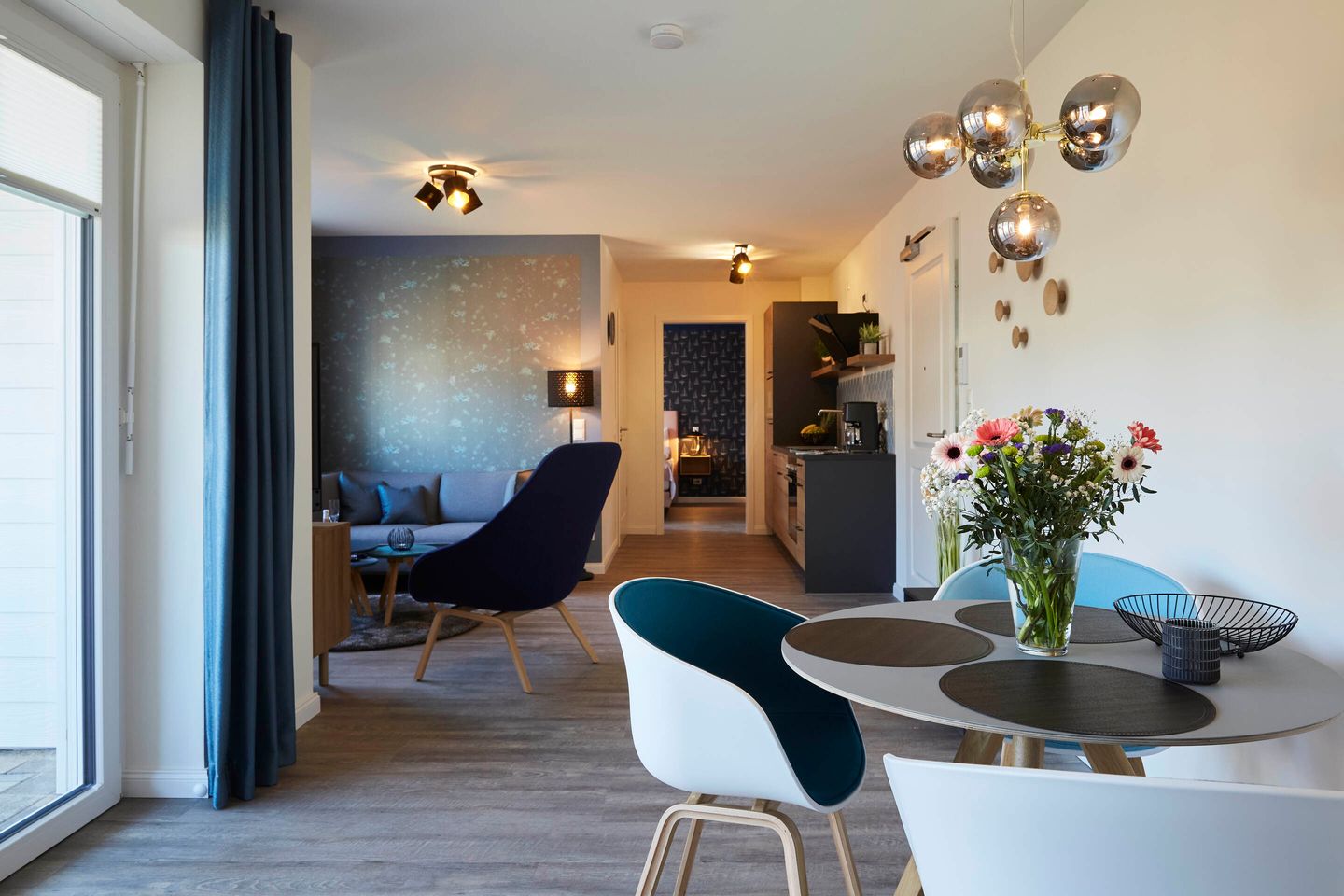 Das Haus "Kattegat" besticht durch seine 32 Serviced-Appartements und Suiten, die angelehnt am skandinavischen Stil, das perfekte Zusammenspiel aus maritimen Elementen und großzügigem Komfort bieten.