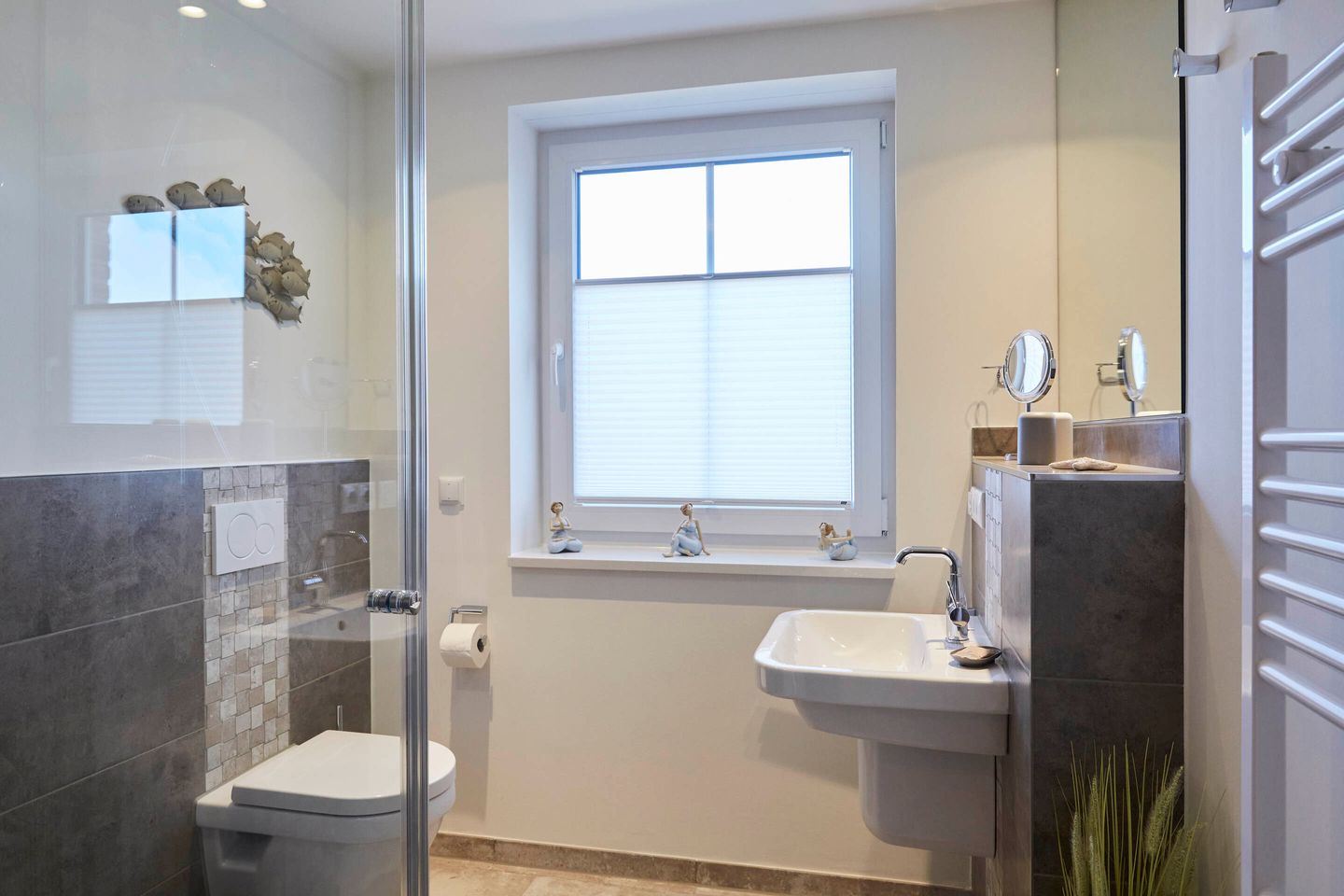Die vollausgestattete Wohnküche lädt zum gemeinsamen Kochen ein. Das moderne Badezimmer besticht durch seine bodentiefe Dusche, Handtuchheizkörper und einem Föhn.