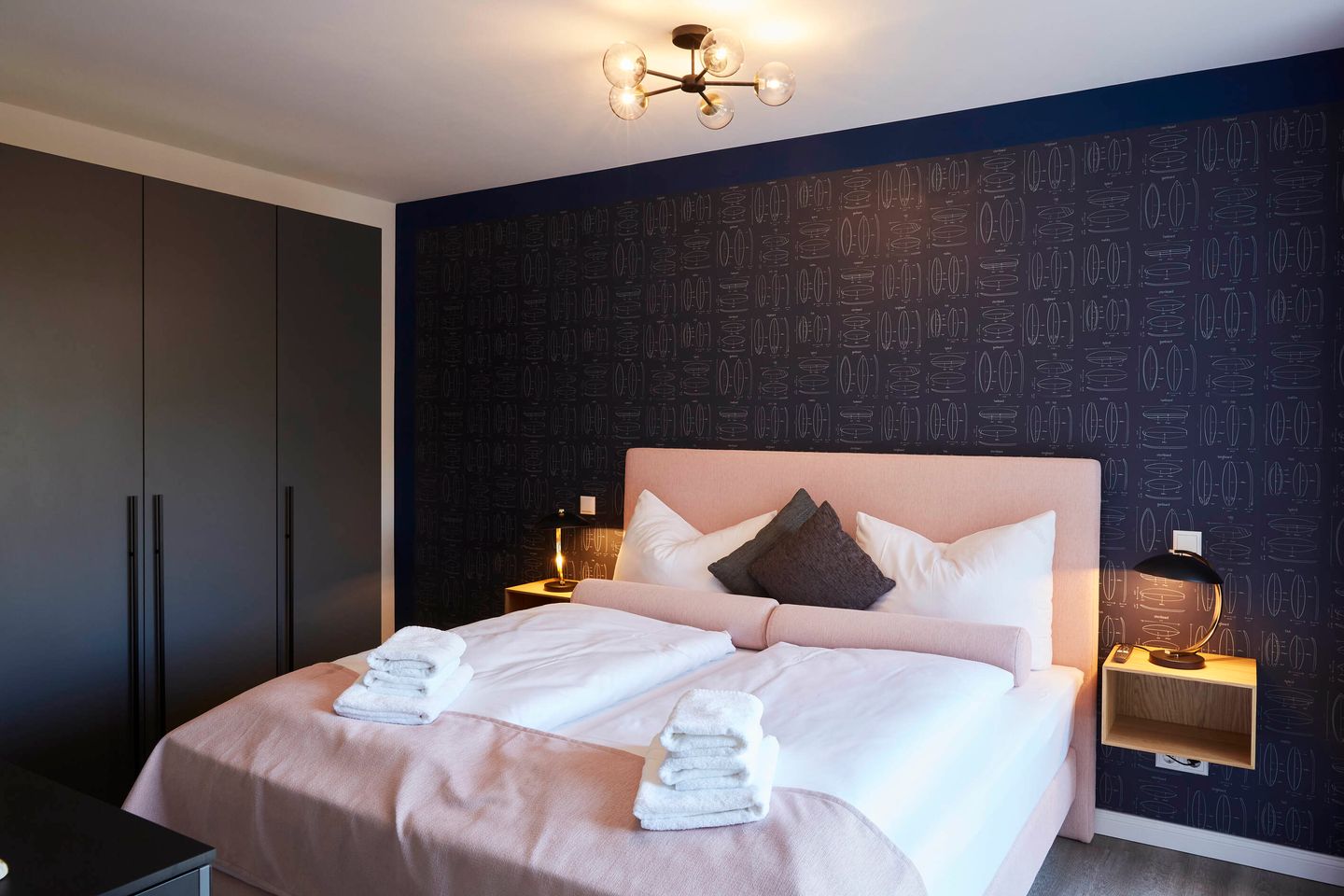 In prominentester Lage erwartet Sie neben hochwertigen Designer-Möbeln, modernste Technik, wie Power W-LAN, eine ökologische Lüftungsanlage, Smart-TVs, ein Bluetooth Radio und ein Fahrstuhl ab der Tiefgarage. Zudem verfügt das gesamte Objekt über eine Fußbodenheizung. Für einen ruhigen Schlaf sorgt das komfortable Boxspringbett, sowie die 3fach verglasten Fenster mit elektrischen Außenjalousien. Die vollausgestattete Wohnküche lädt zum gemeinsamen Kochen ein. Das moderne Badezimmer besticht durch seine bodentiefe Dusche, Handtuchheizkörper und einem Föhn.