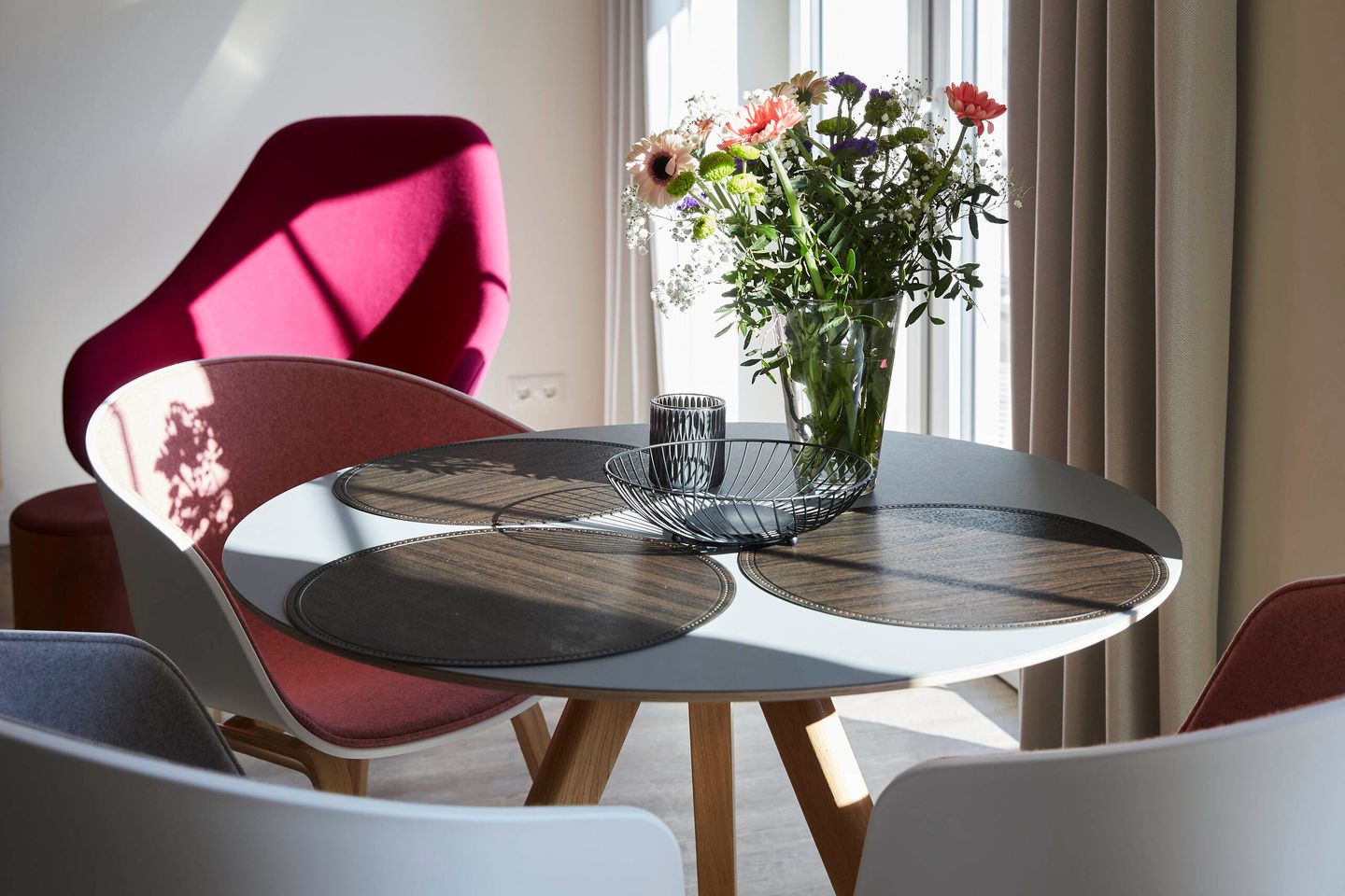 Für einen rundum gelungenen Aufenthalt haben Sie - wie in einem Hotel - die Möglichkeit, verschiedene Annehmlichkeiten, wie z.B. unser reichhaltiges Frühstücksbüffet im gegenüberliegenden „Suite & Breakfast“, einen Roomservice oder unseren Concierge Service, über unsere Rezeptionen dazu zubuchen.