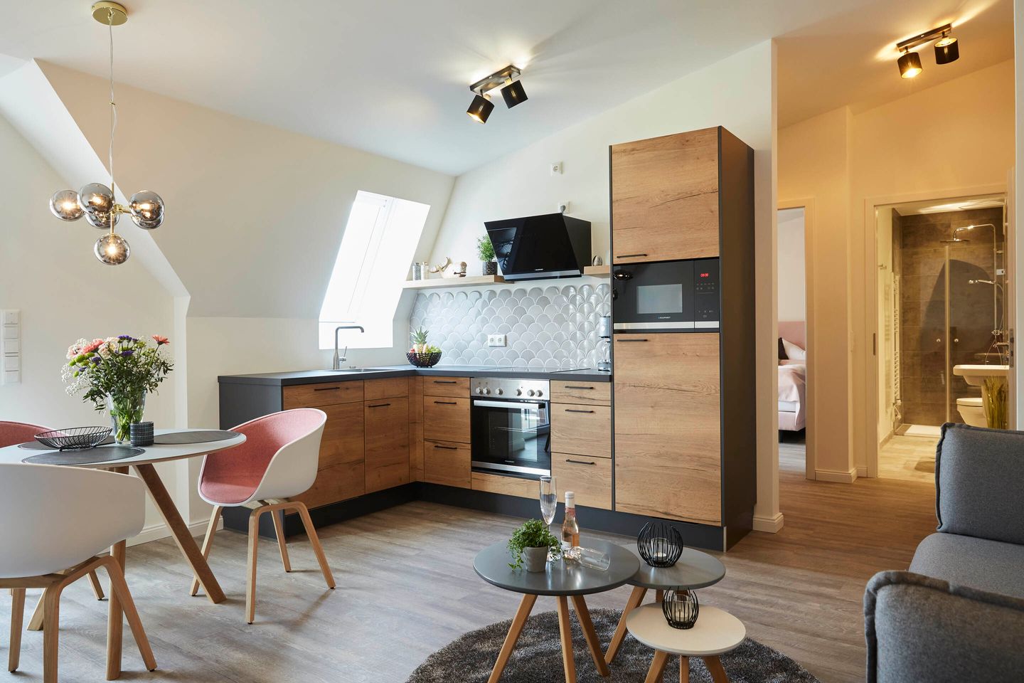 Das Haus "Kattegat" besticht durch seine 32 Serviced-Appartements und Suiten, die angelehnt am skandinavischen Stil, das perfekte Zusammenspiel aus maritimen Elementen und großzügigem Komfort bieten.