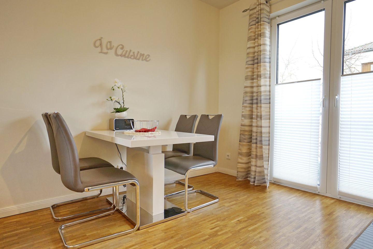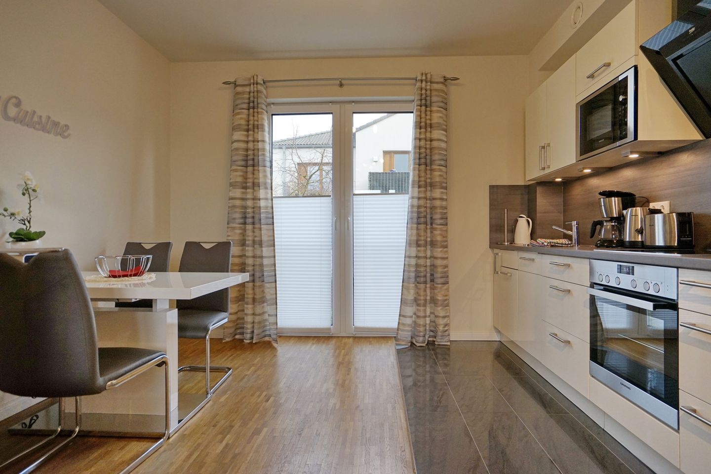 Sie unterteilt sich in einen gemütlichen Wohn- und Essbereich, ein Schlafzimmer und ein geräumiges Bad. Die offene Küche ist bestens ausgestattet und lädt zu ausgiebigen Kochabenden ein.