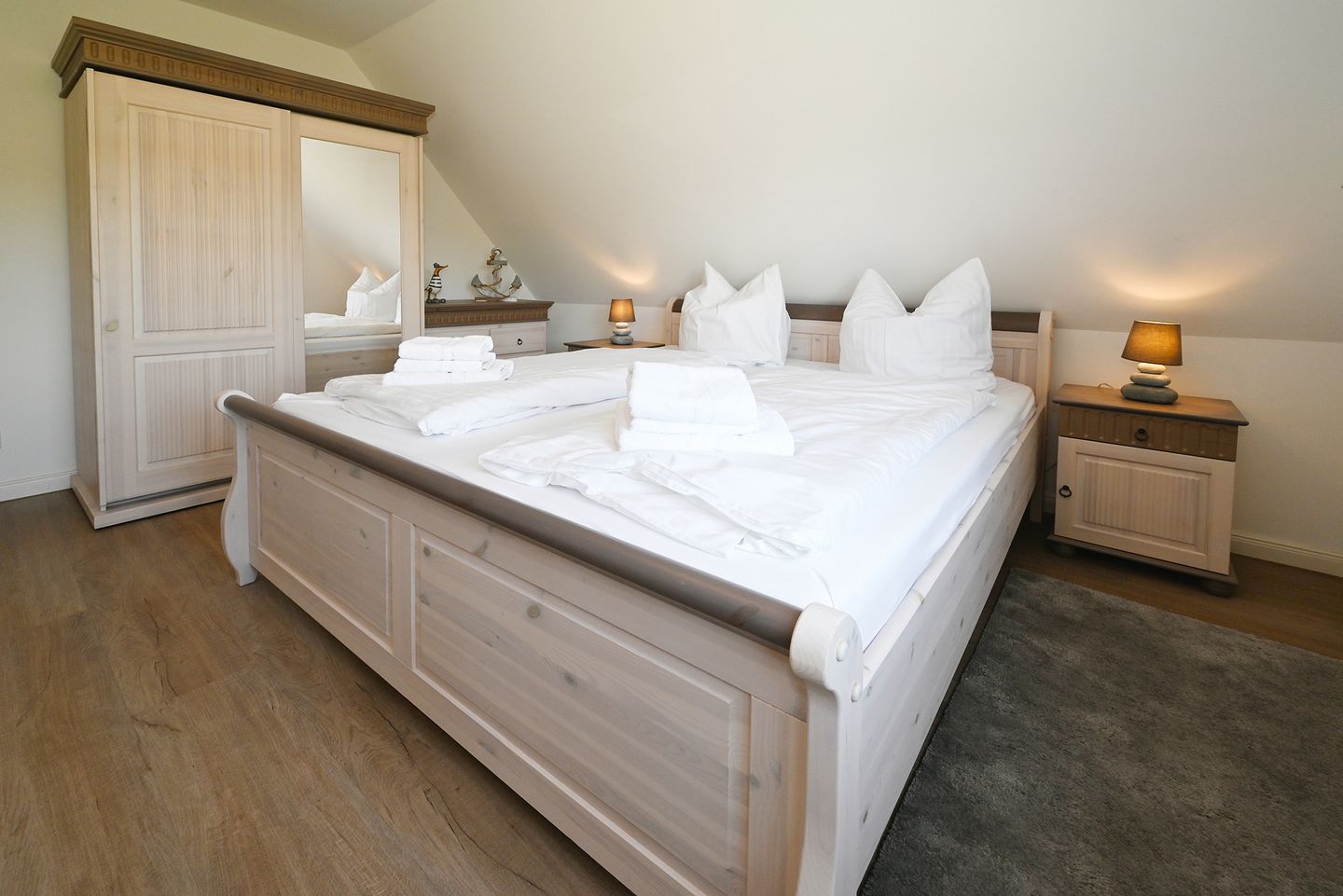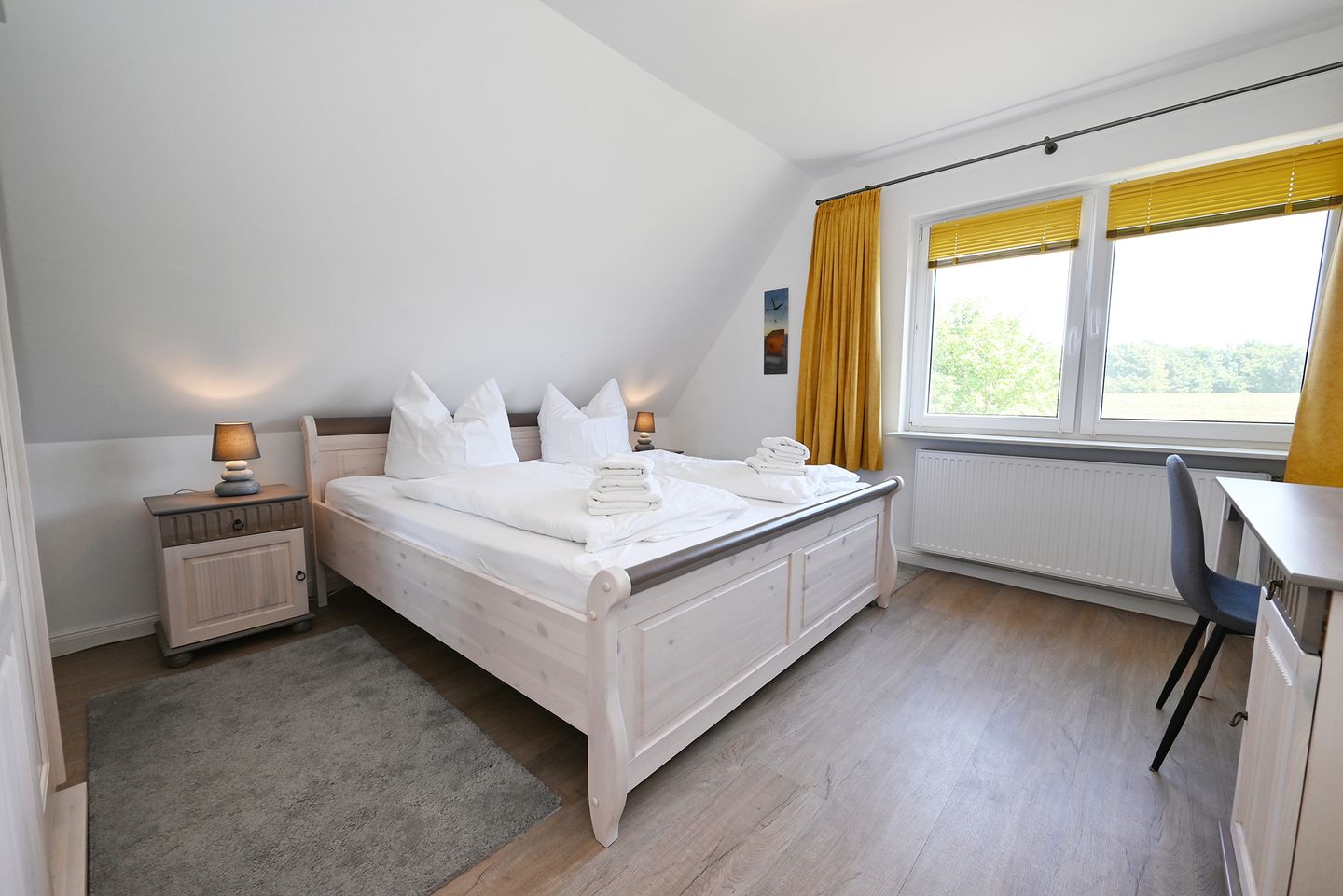 Im dritten Schlafzimmer befinden sich zwei Einzelbetten, welche jeweils 0,90 x 2,00 Meter groß sind.