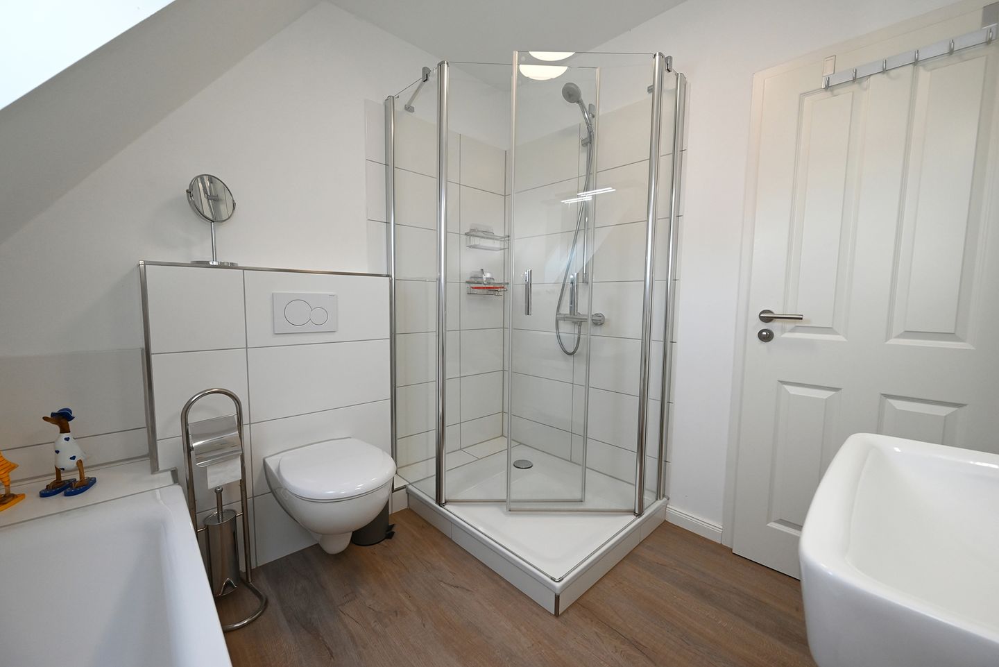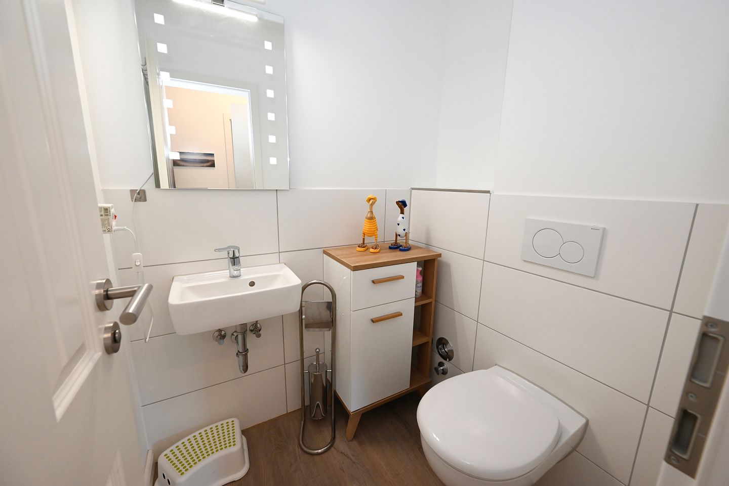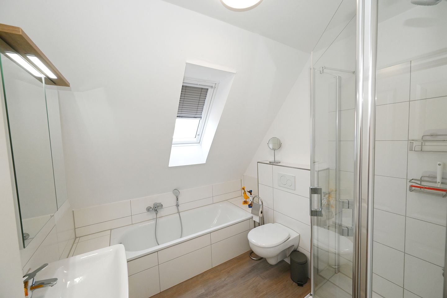 Die Wohnung bietet ein vollwertiges Badezimmer, sowie ein Gäste-WC.
