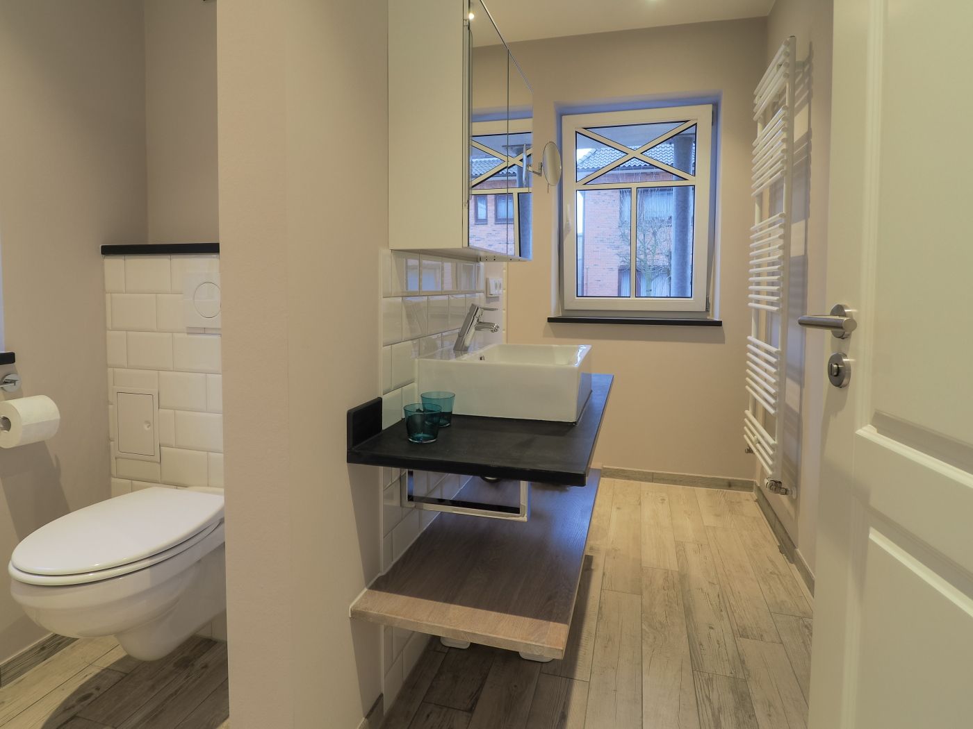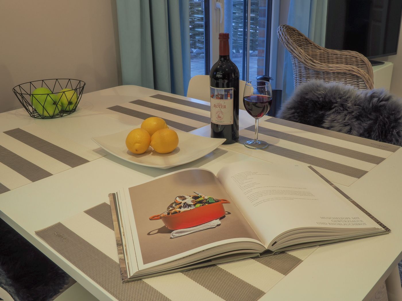 Die Ferienwohnungen bestechen durch modernste Ausstattung, lichtdurchflutete Räume und helle Farbtöne im nordischen Stil. Besonderheit ist die Nähe zum Hauptstrand und dennoch die Ruhe, trotz der zentralen Lage. Die Küchenzeile ist mit hochwertigem Kücheninterieur ausgestattet. Ein modernes, großzügiges Duschbad mit WC sind ebenfalls vorhanden. Zwei Flachbildfernseher und WLAN verfeinern die gehobene Ausstattung. Die Wohnungen Kombüse, Kajüte und Ausguck sind mit einem Kamin ausgestattet. Im Erdgeschoss befindet sich der gemeinschaftliche Saunabereich.
