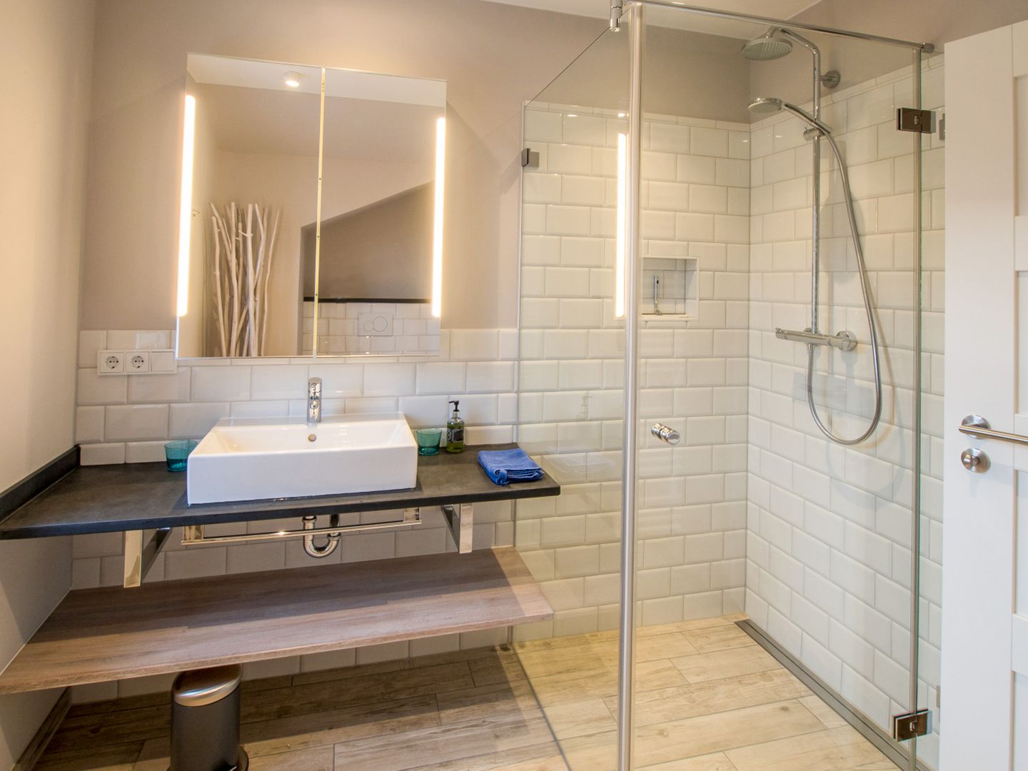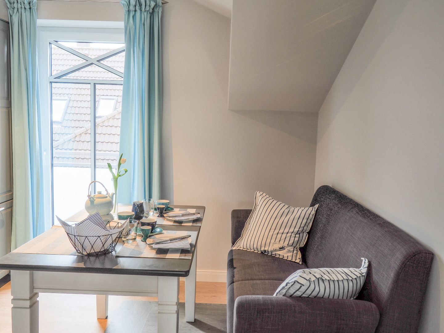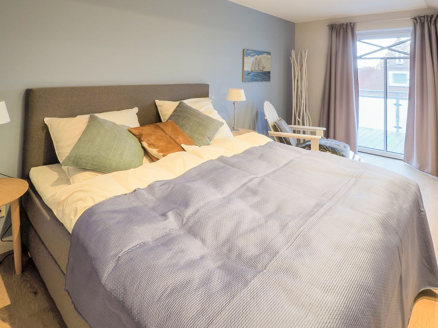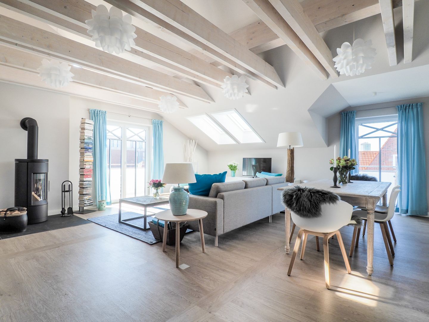 Die Ferienwohnungen bestechen durch modernste Ausstattung, lichtdurchflutete Räume und helle Farbtöne im nordischen Stil. Besonderheit ist die Nähe zum Hauptstrand und dennoch die Ruhe, trotz der zentralen Lage. Die Küchenzeile ist mit hochwertigem Kücheninterieur ausgestattet. Ein modernes, großzügiges Duschbad mit WC sind ebenfalls vorhanden. Zwei Flachbildfernseher und WLAN verfeinern die gehobene Ausstattung. Die Wohnungen Kombüse, Kajüte und Ausguck sind mit einem Kamin ausgestattet. Im Erdgeschoss befindet sich der gemeinschaftliche Saunabereich.