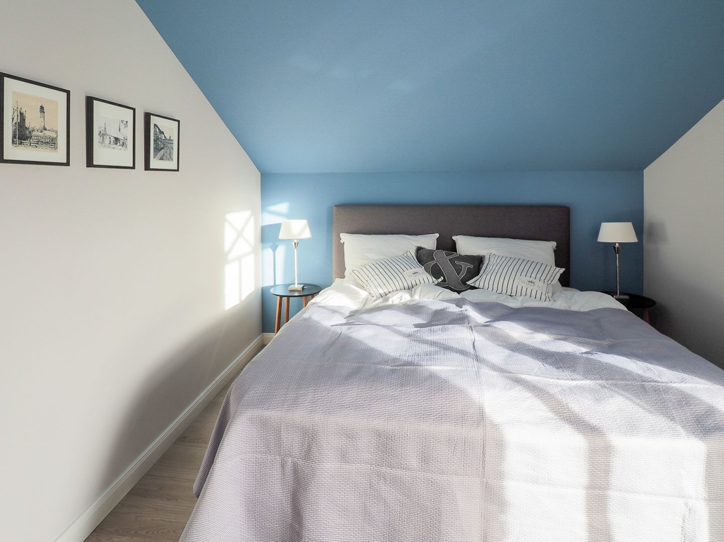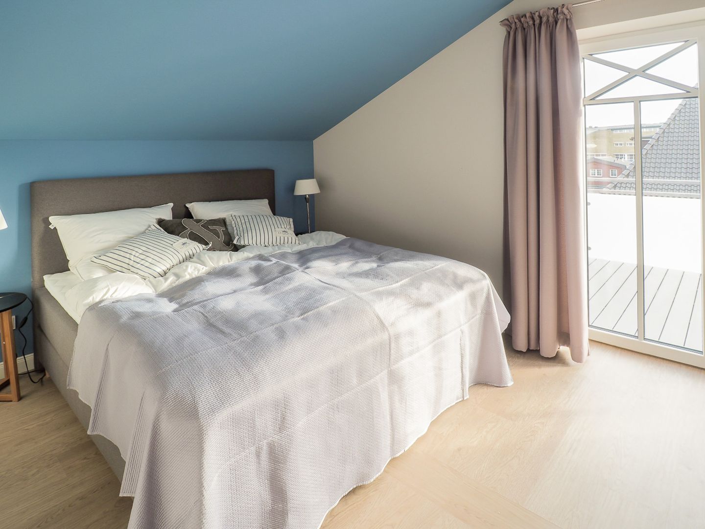Vier Personen genießen Ruhe und höchste Schlafqualität in den beiden Schlafräumen (Hinweis: Auf den Betten finden Sie durchgehende Topper, ein großes Bettlaken wird benötigt).