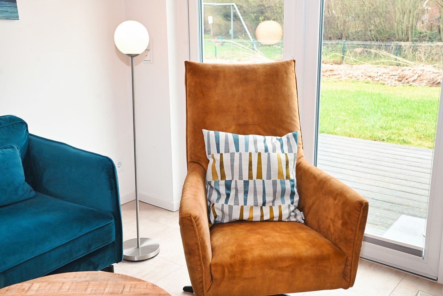 Der offen gestaltete Wohn- und Essbereich ist hell und einladend eingerichtet und bildet das Herzstück des Hauses. Ein Kamin sorgt besonders in den kühleren Monaten für eine gemütliche Atmosphäre. Für Unterhaltung ist ebenfalls bestens gesorgt, denn eine Surround-Anlage, ein DVD- und Blu-ray-Player, Magenta TV, eine Wii-Konsole sowie verschiedene Gesellschaftsspiele stehen zur Verfügung und bieten Abwechslung für Groß und Klein.