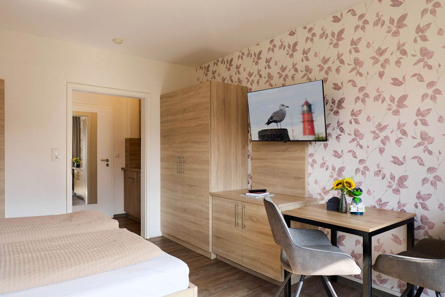 Ein besonderes Highlight der Unterkunft ist die private Terrasse, die mit Gartenmöbeln ausgestattet ist. Hier können Sie die frische Nordseeluft genießen oder mit einem Glas Wein den Tag ausklingen lassen. Die moderne Ausstattung umfasst WLAN und einen Fernseher, damit Sie auch im Urlaub auf dem Laufenden bleiben können.