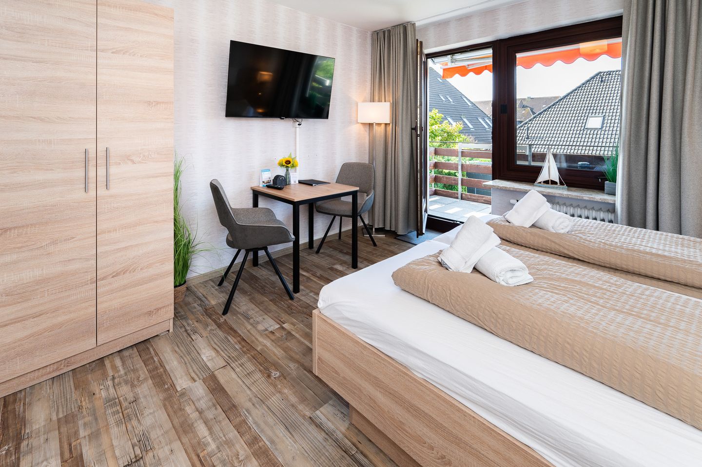 Für Reisende, die auch im Urlaub den Kontakt zur Außenwelt aufrechterhalten möchten, stehen Ihnen kostenloses WLAN und Internet zur Verfügung. Entspannen Sie abends bei einem gemütlichen Fernsehabend vor dem TV oder lassen Sie den Tag auf dem eigenen Balkon Revue passieren – ein perfekter Ort für Ihre ganz persönlichen Genussmomente.