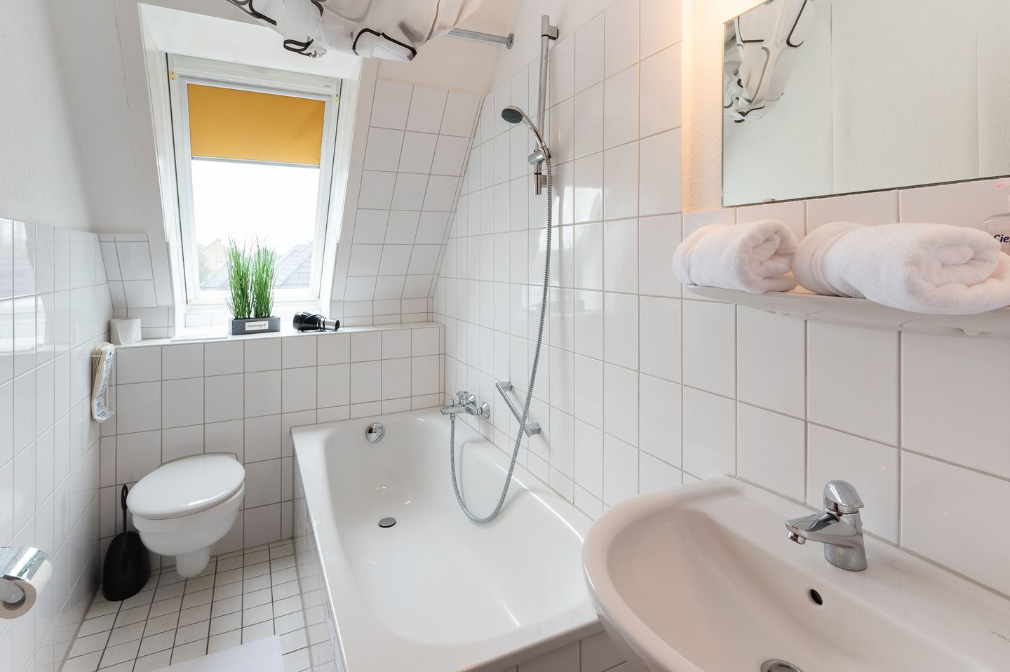 Die Kochnische ist mit allem ausgestattet, was Sie für die Zubereitung von köstlichen Mahlzeiten benötigen. Dazu gehören ein 2-Platten-Herd, ein Kühlschrank und eine praktische Espressomaschine der Marke Tassimo. Genießen Sie es, Ihr Frühstück auf dem Balkon einzunehmen, während Sie den frischen Nordseewind spüren und den Blick in die Umgebung genießen.