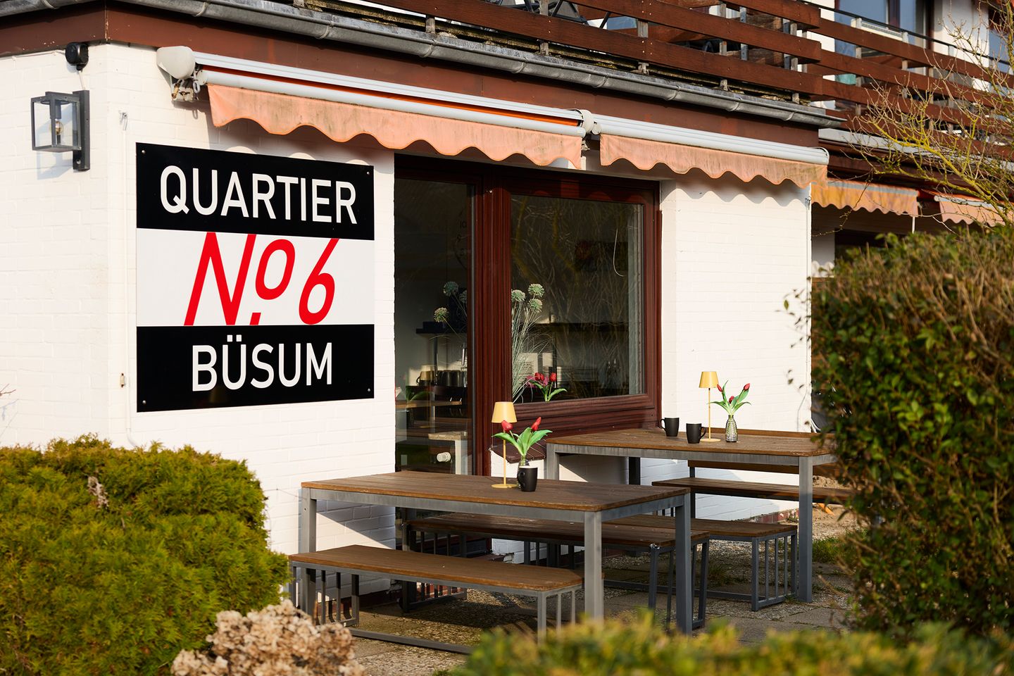 Zentral gelegen, liegt das Quartier No. 6 Büsum, mit seinen 19 Quartieren, nur wenige Gehminuten zur Nordsee und dem Stadtkern Büsums entfernt. Das Konzept des Quartiers ist simpel & einfach zu beschreiben. 19 Quartiere mit verschieden Ausstattungsvarianten, eine komplett ausgestattete Gemeinschaftsküche mit Allem, was dazugehört zum selbst versorgen, reichlich Sitzmöglichkeiten im Küchenbereich zum Essen, plaudern oder einfach nur für das Glas Wein am Abend, ein Außenbereich zum Grillen und Chillen und allen weiteren typischen Merkmalen eines Quartiers, wie genügend Parkmöglichkeiten, WLAN und einem professionellen Reinigungsservice. Wen sprechen wir an? Wir sprechen alle an, die sich angesprochen fühlen. Die Familie, die in Büsum ein paar Tage Nordseeurlaub machen möchte und dabei den Selbstversorger Charakter genießen möchte, der Geschäftsmann, der nach seinen Businesstag noch ein gepflegtes Feierabendbier im Gemeinschaftsraum „zischen“ möchte und dabei die letzten Mails checkt oder den klassischen Nordseeurlauber, der ein paar Tage Auszeit bei uns buchen möchte und dabei die lockere, ungezwungene Atmosphäre schätzt. Sie planen beruflich einen längeren Zeittraum in Büsum oder Umgebung zu verbringen? Auch das ist im Quartier No.6 möglich. Sie sehen schon, dass wir mit unserem Konzept alle ansprechen möchten und freuen uns auf einen baldigen Besuch in Büsum in unserem Quartier No. 6.