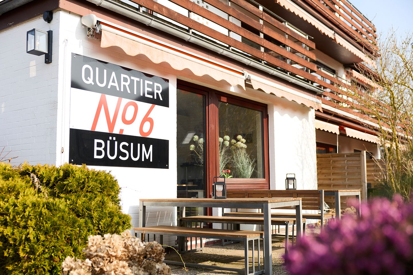 Zentral gelegen, liegt das Quartier No. 6 Büsum, mit seinen 19 Quartieren, nur wenige Gehminuten zur Nordsee und dem Stadtkern Büsums entfernt. Das Konzept des Quartiers ist simpel & einfach zu beschreiben. 19 Quartiere mit verschieden Ausstattungsvarianten, eine komplett ausgestattete Gemeinschaftsküche mit Allem, was dazugehört zum selbst versorgen, reichlich Sitzmöglichkeiten im Küchenbereich zum Essen, plaudern oder einfach nur für das Glas Wein am Abend, ein Außenbereich zum Grillen und Chillen und allen weiteren typischen Merkmalen eines Quartiers, wie genügend Parkmöglichkeiten, WLAN und einem professionellen Reinigungsservice. Wen sprechen wir an? Wir sprechen alle an, die sich angesprochen fühlen. Die Familie, die in Büsum ein paar Tage Nordseeurlaub machen möchte und dabei den Selbstversorger Charakter genießen möchte, der Geschäftsmann, der nach seinen Businesstag noch ein gepflegtes Feierabendbier im Gemeinschaftsraum „zischen“ möchte und dabei die letzten Mails checkt oder den klassischen Nordseeurlauber, der ein paar Tage Auszeit bei uns buchen möchte und dabei die lockere, ungezwungene Atmosphäre schätzt. Sie planen beruflich einen längeren Zeittraum in Büsum oder Umgebung zu verbringen? Auch das ist im Quartier No.6 möglich. Sie sehen schon, dass wir mit unserem Konzept alle ansprechen möchten und freuen uns auf einen baldigen Besuch in Büsum in unserem Quartier No. 6.