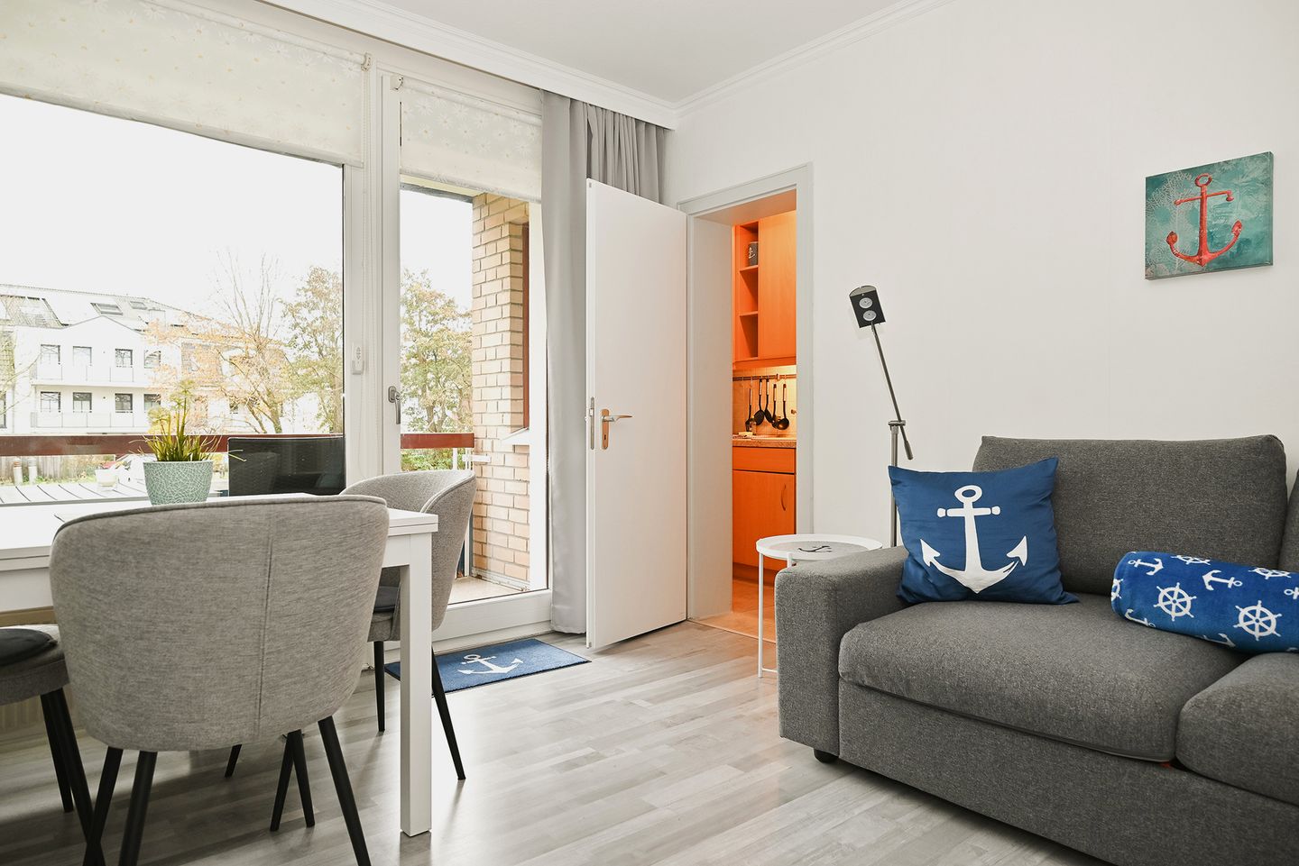 Die modern und stilvoll eingerichtete 2-Raum-Wohnung ist 52 Quadratmeter groß und bietet Platz für bis zu drei Küstenurlauber.