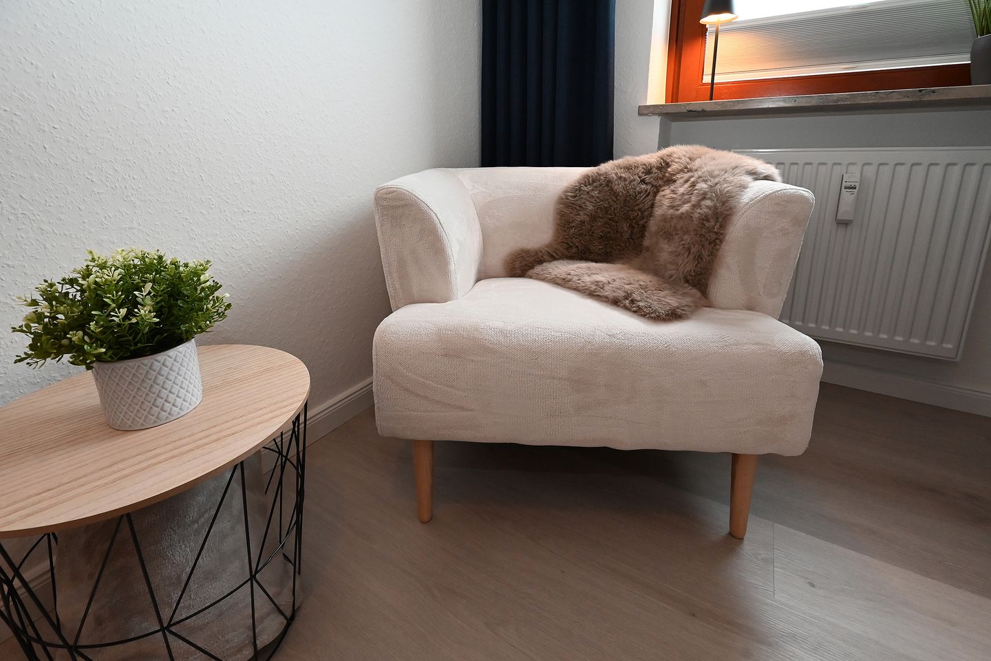 Die helle, im 3. Obergeschoss gelegene, Wohnung zeichnet sich durch ihre liebevolle und behagliche Einrichtung aus.