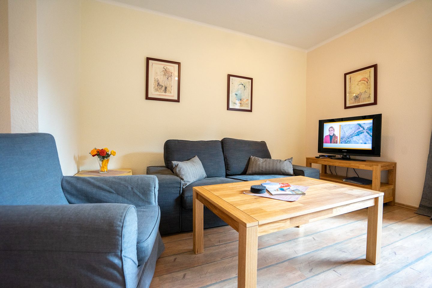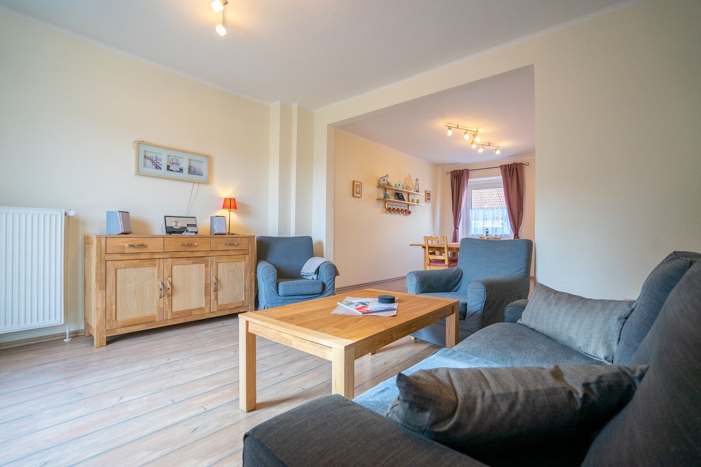 Das Ferienhaus Junker ist ca. 90qm groß und komplett ausgestattet. Laminatboden und Fliesen